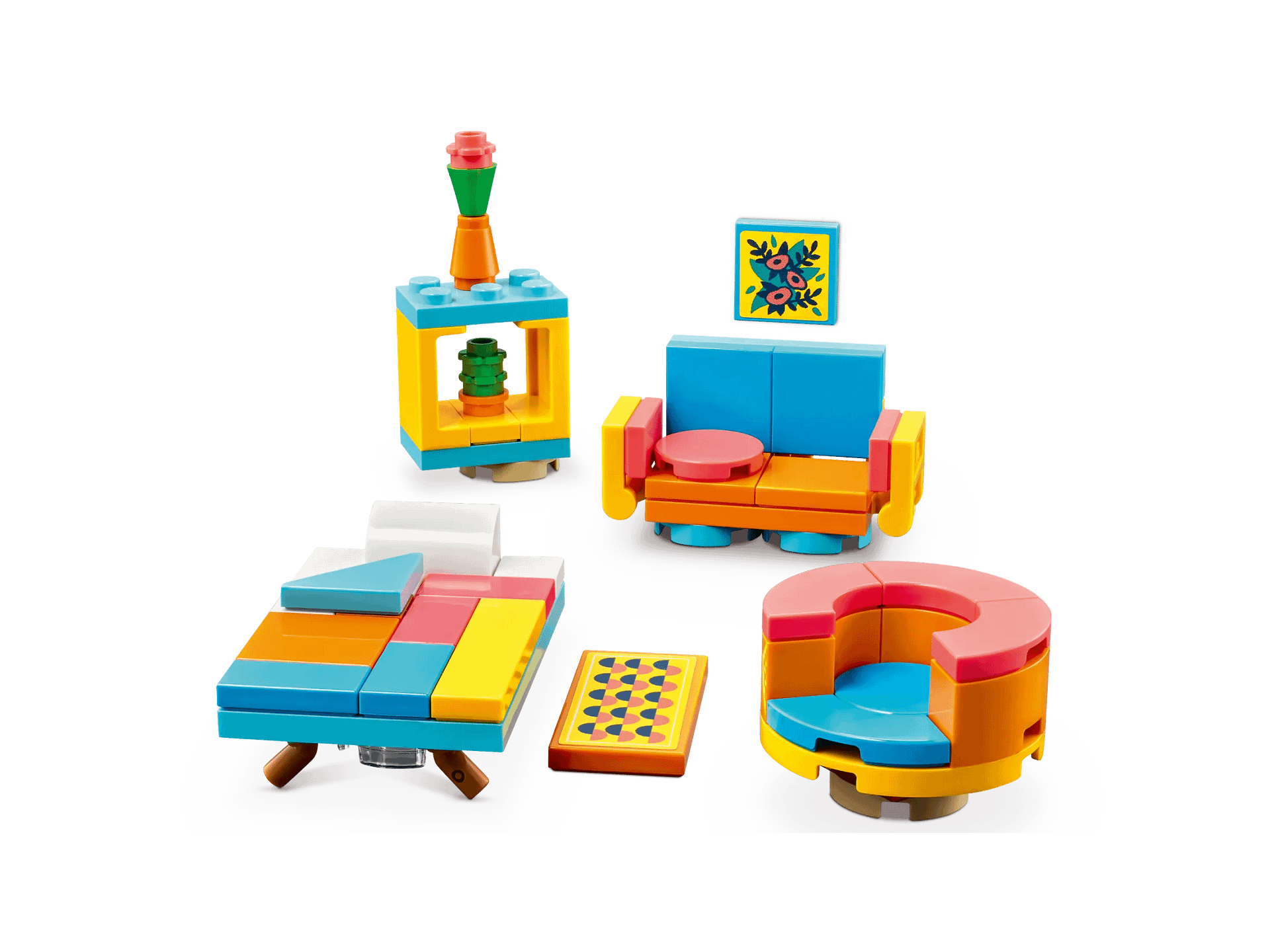 - Lots of accessories – This set comes with accessories to bring the stories to life with furniture, a paint can and roller, a key for the apartment, a watering can and a saxophone