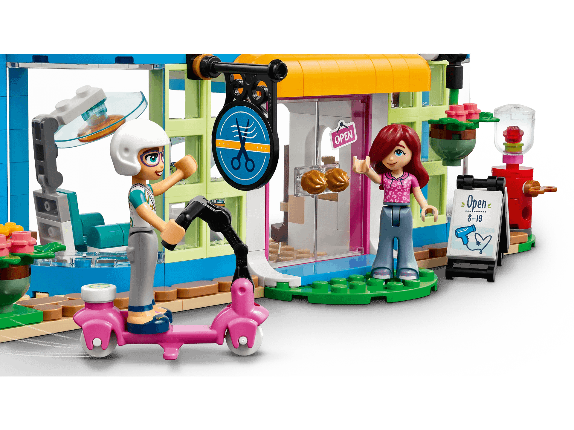 - 3 mini-dolls – The set comes with LEGO® Friends characters Paisley, Olly and Nadia, the hair salon building with its detailed interior and exterior, plus Olly’s scooter and a park bench