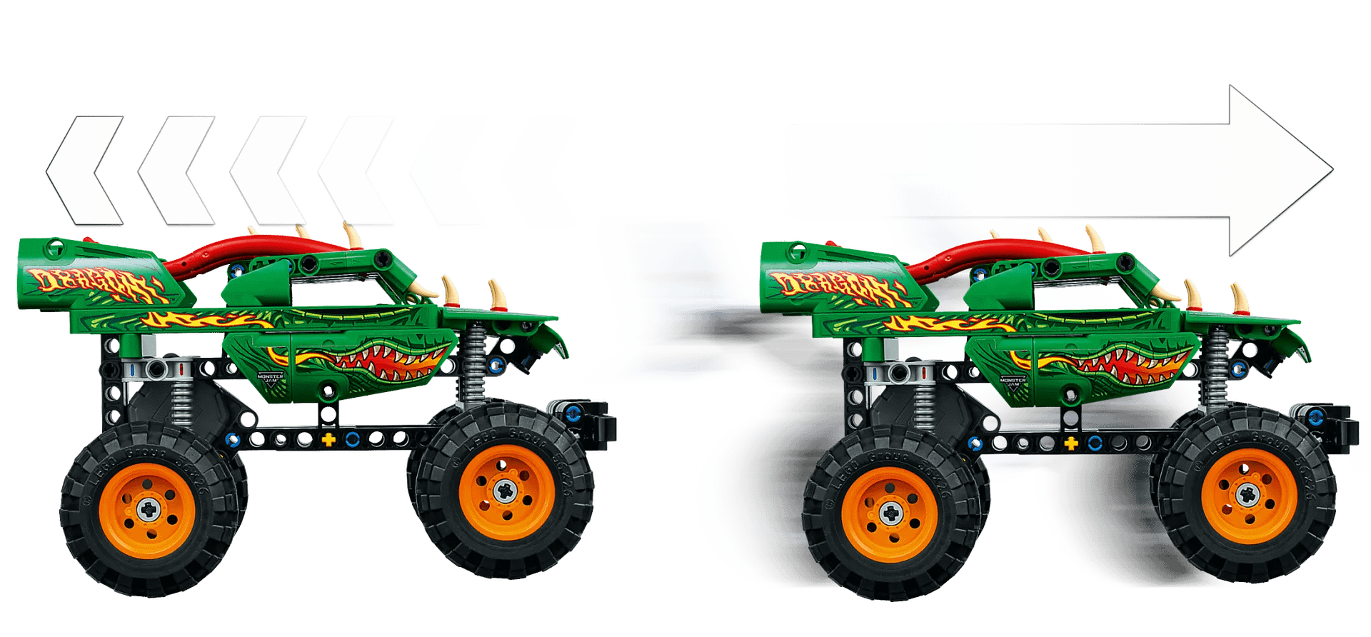 Kids aged 7+ who love Monster Jam™ have lots to discover with this LEGO® Technic™ Monster Jam Dragon™ (42149) pull-back truck toy. It comes with awesome dragon details like spikes and horns. With realistic graphics and colors, this toy truck model lets kids recreate favorite scenes from the Monster Jam arena.A 2-in-1 toy for even more playWhen kids are ready for something new, they can rebuild this 2-in-1 toy Monster Jam truck into a Crocodile Buggy model. The pull-back action lets kids race their truck and recreate the tricks they’ve seen in the real Monster Jam arena.A great introduction to engineeringLEGO Technic buildable models feature realistic movement and mechanisms that introduce LEGO builders to the universe of engineering in an approachable and realistic way. Get ready for an easy and intuitive building adventure with the LEGO Builder app. Here kids can zoom in and rotate models in 3D, save sets and track their progress.