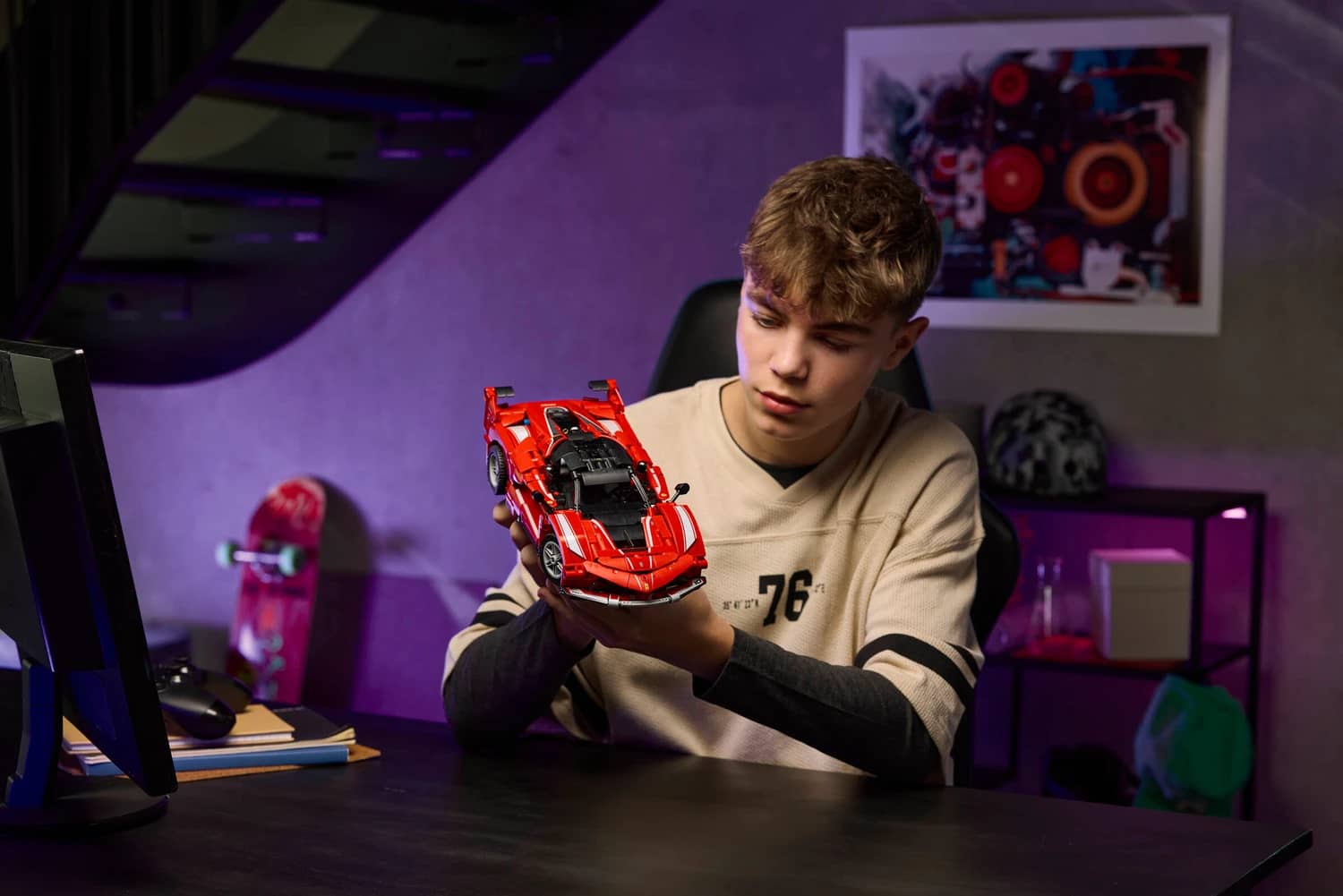 - LEGO® Ferrari model car kit – This STEM building toy for kids aged 10 and up lets girls and boys build a realistic model version of the Ferrari FXX K with authentic features