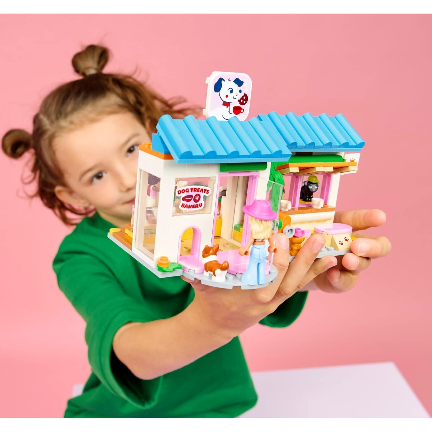 Inspire kids to create their own sweet stories with the LEGO® Friends Dog Treats Bakery (42677) toy for girls and boys ages 6 and up. The bakery shop is packed with humorous details and toy accessories to delight pet lovers. Discover an oven, coffee machine, refrigerator and seating, plus lots of animal-friendly details like the fun signage, pet carrier and pet door.