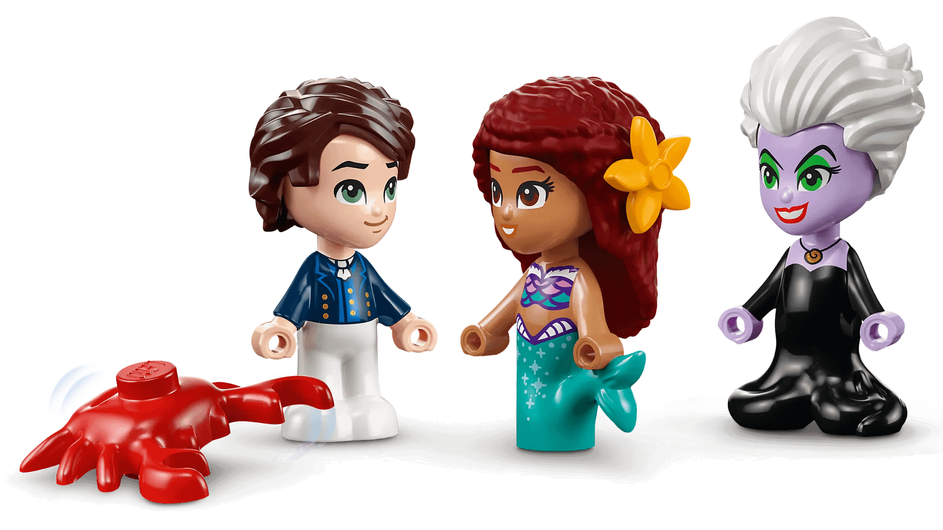 - Beloved characters – Based on the upcoming live-action The Little Mermaid film, the book features Disney’s Ariel, Prince Eric and Ursula, plus a Sebastian LEGO® crab figure and lots of story starters