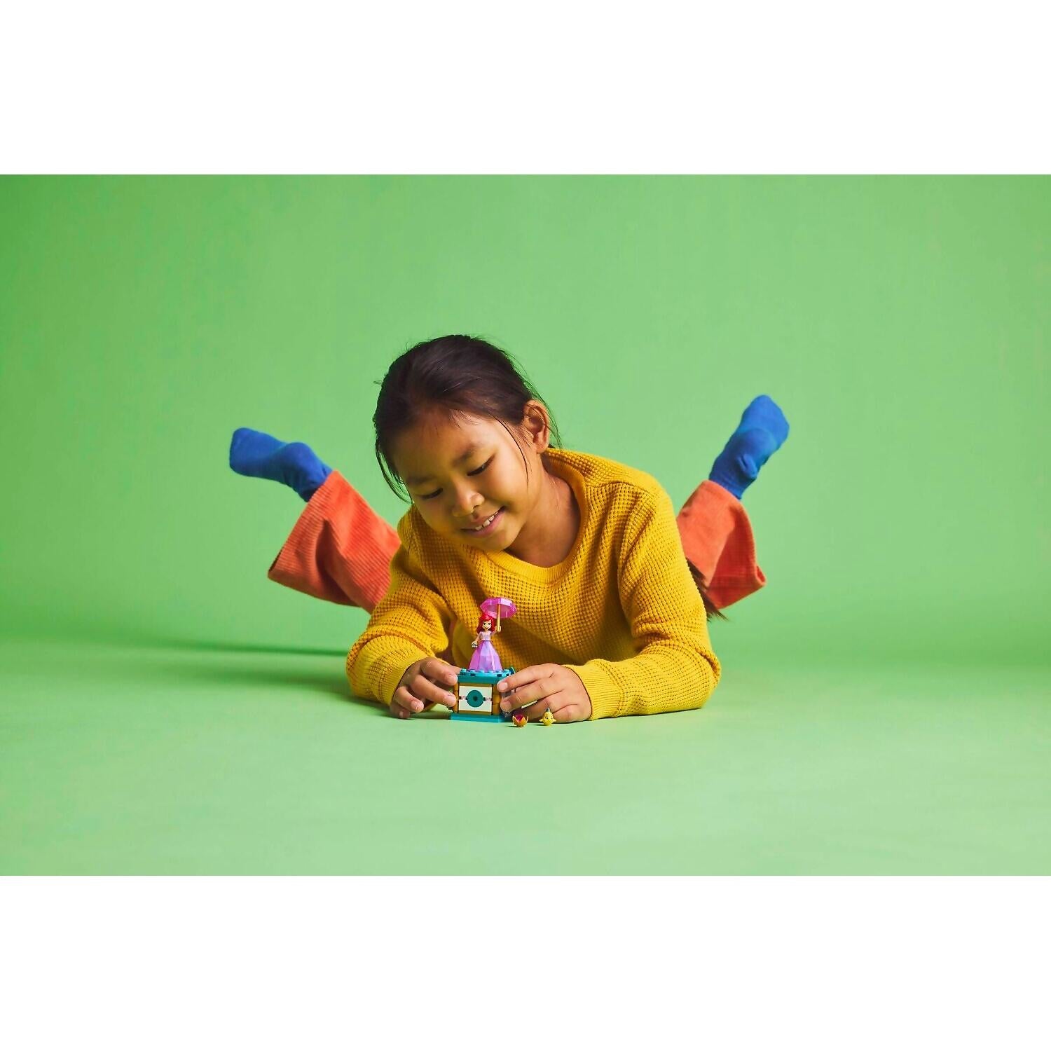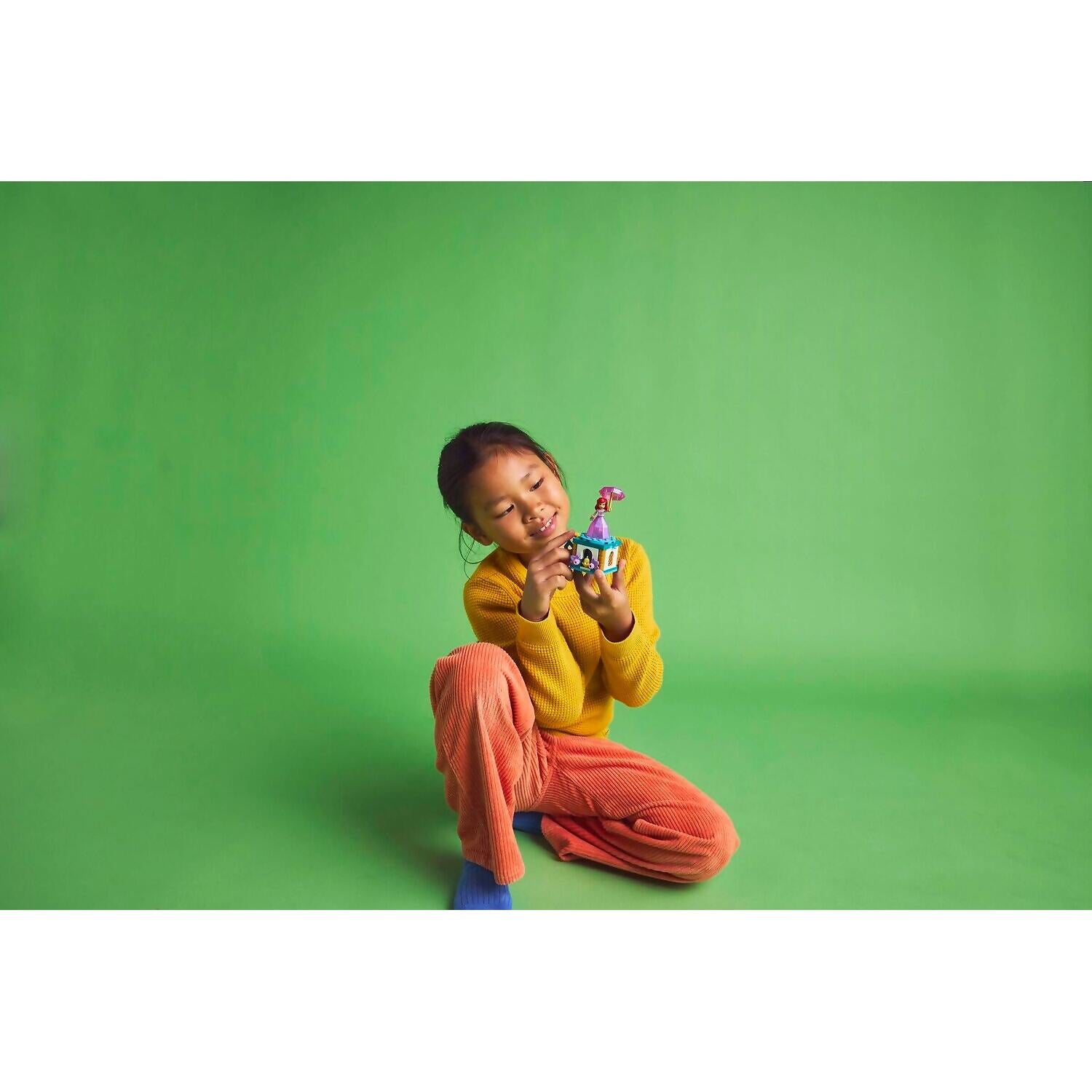 - Engaging building toy – Turn the key on the stand to spin the plate and twirl Ariel around, then store the LEGO® ǀ Disney mini-doll figure inside the ’diamond’ dress using the umbrella as a lid