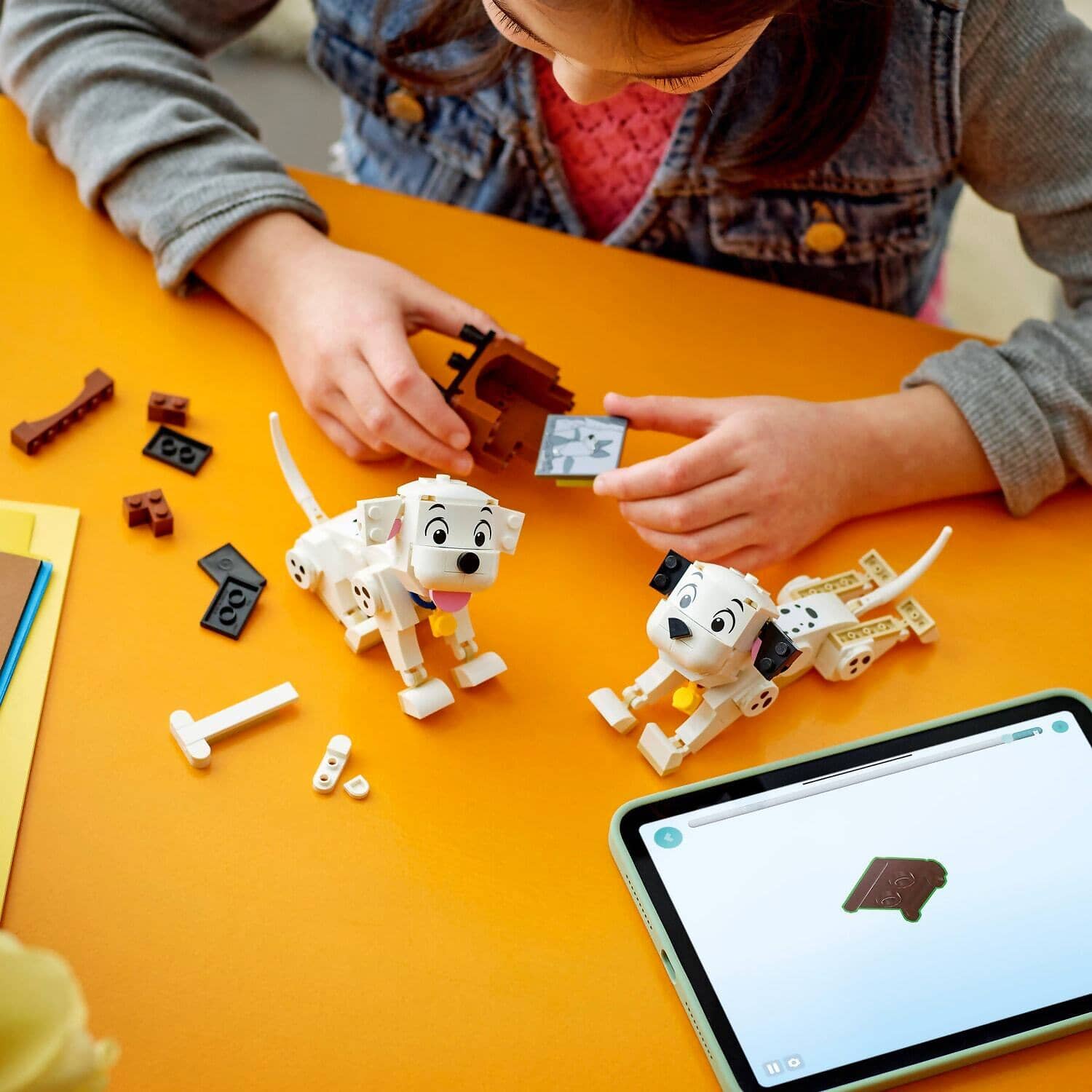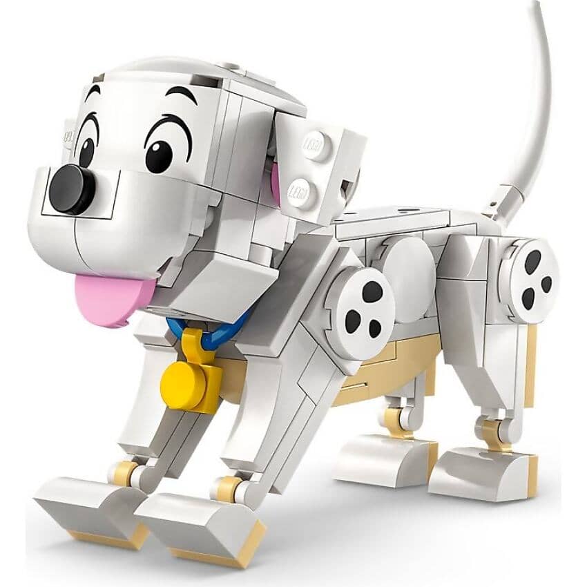 - Dalmatian puppies everywhere – This kids’ building toy features Lucky and Penny LEGO® ǀ Disney characters from the classic movie 101 Dalmatians, plus a brick-built bone and a small TV with screen