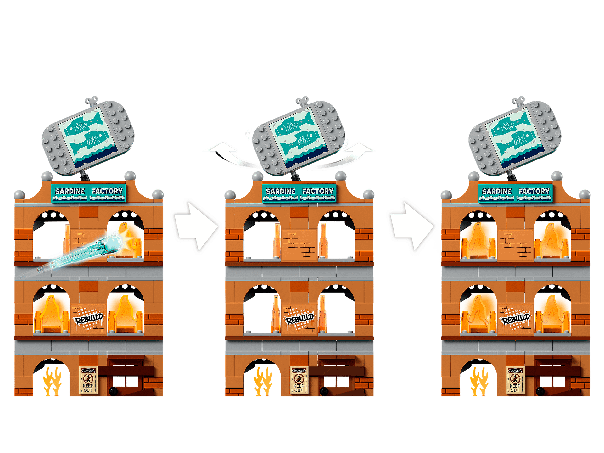 - Dimensions – When built, the sardine factory measures over 12 in. (30 cm) high, 13.5 in. (34 cm) wide and 12.5 in. (32 cm) deep