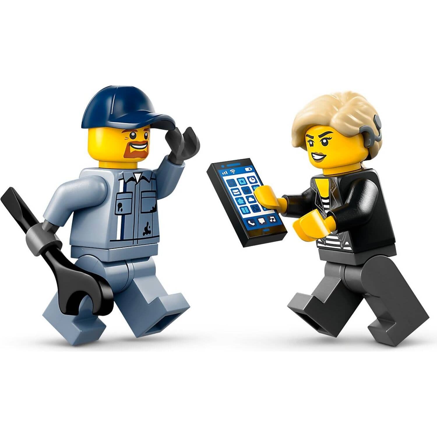 - LEGO® minifigure accessories – This toy vehicle recovery playset comes with accessories for pretend play, including a toy wrench and phone