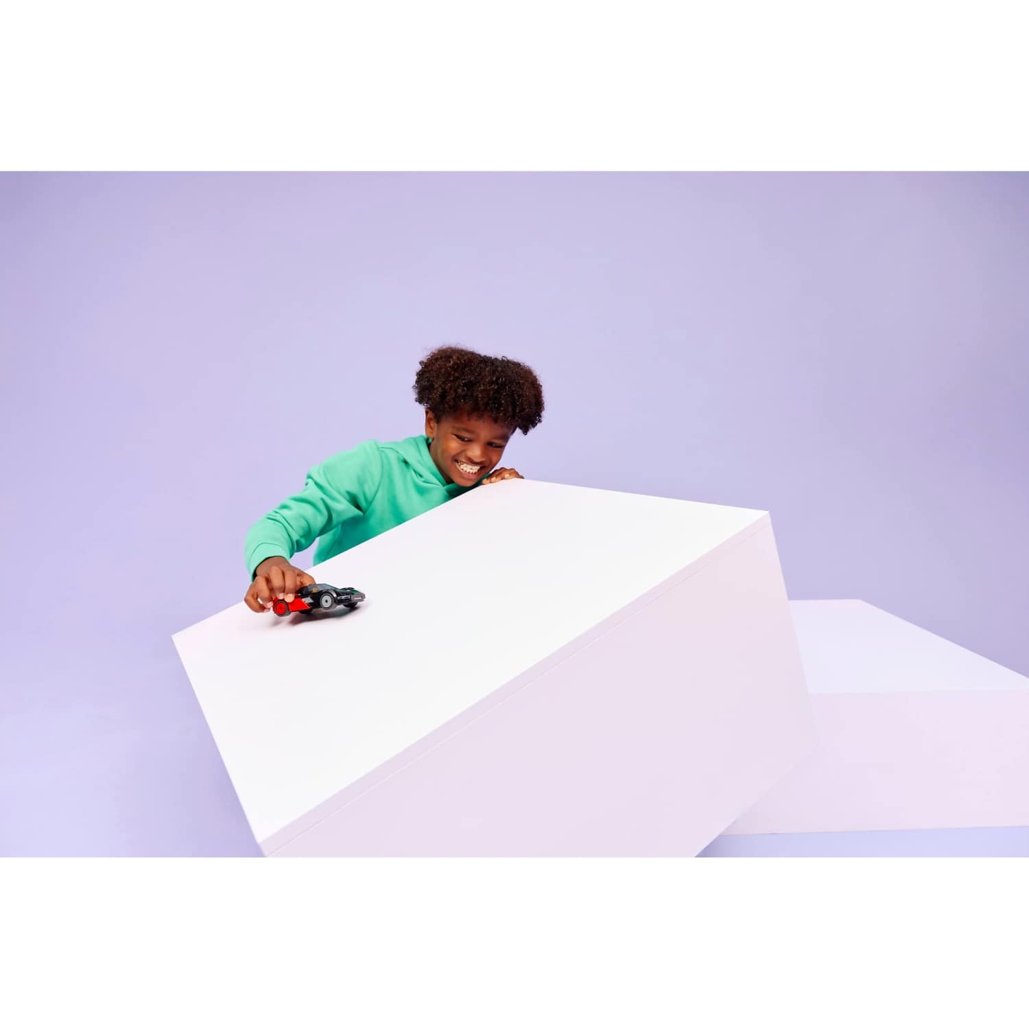 - JUST LIKE THE REAL THING – Lift the rear hatch of the small black and red sports car to access the toy battery pack and put the driver minifigure behind the wheel for hours of foot-to-the-floor action