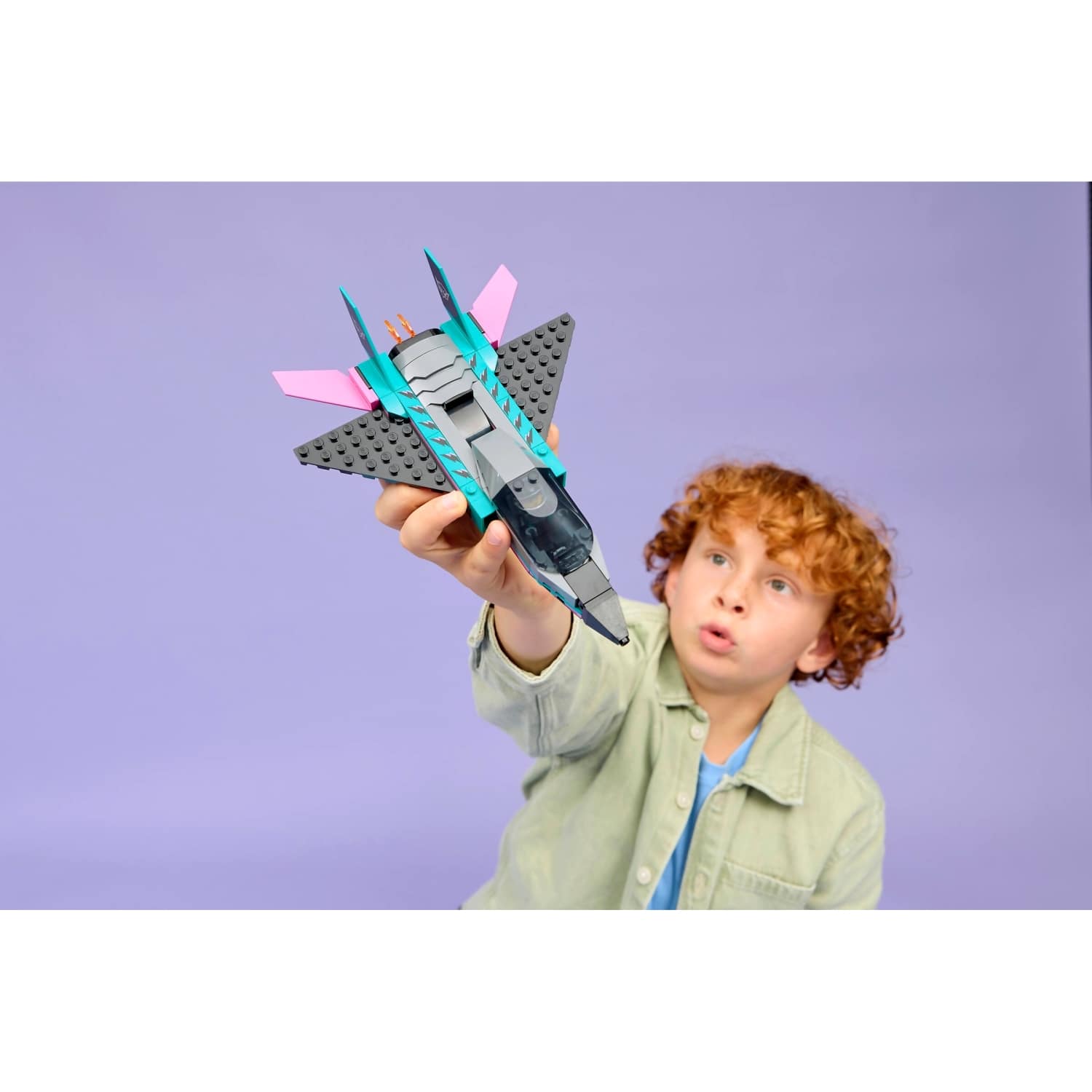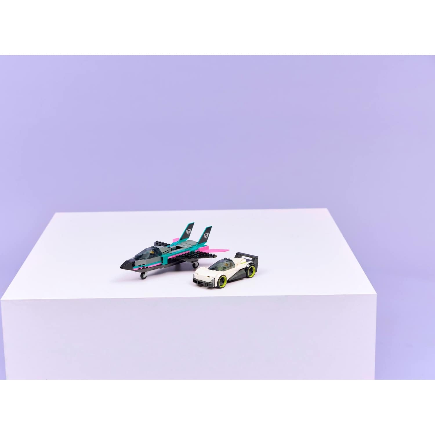 This double-feature LEGO® City Jet vs. Car (60489) vehicle toys playset includes a sleek supercar and a supersonic jet for imaginative racing fun. The toy jet features swept-back wings, twin vertical fins and stabilizers. Kids can slide a lever to engage the jet’s afterburners and open the cockpit of the supercar to access the detailed interior, complete with a racing seat.