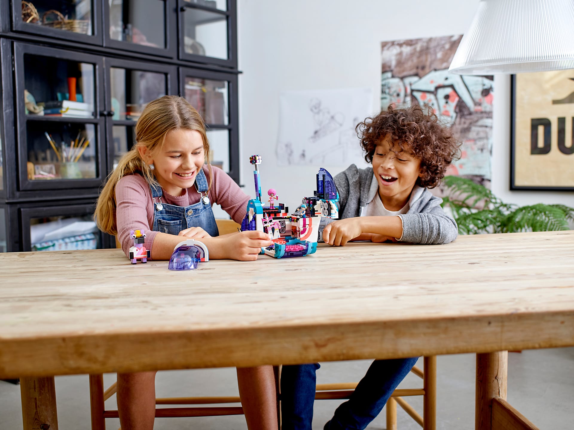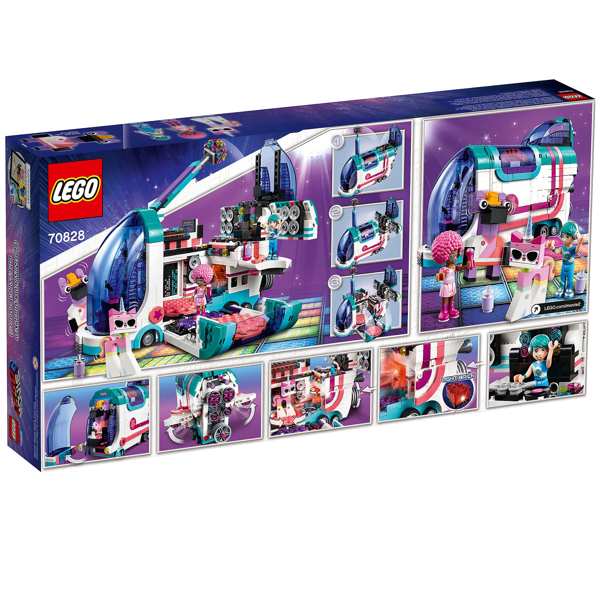 All aboard THE LEGO MOVIE 2 70828 Pop-Up Party Bus and party on with Disco Kitty and friends. This fun toy bus features an opening cockpit for the Zebe figure, opening roof and sides for easy play, foldout loudspeakers, a LEGO light brick to light up the rotating dancefloor and a flip-up disco ball with translucent-colored elements. This THE LEGO MOVIE 2 set includes buildable Unikitty as Disco Kitty and Zebe figures, plus Tempo and Melody mini-doll figures.- Includes 2 buildable THE LEGO MOVIE 2 figures: Unikitty as Disco Kitty and Zebe, plus Tempo and Melody mini-doll figures.