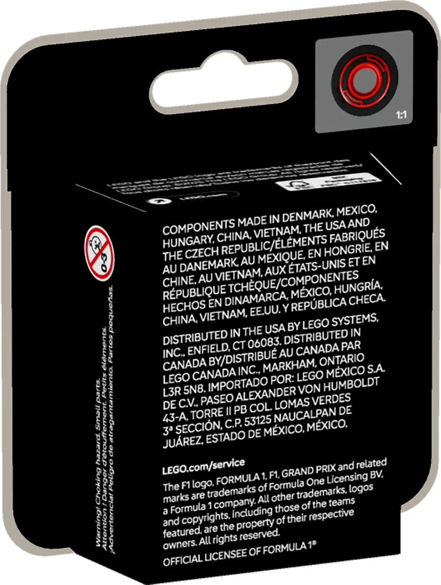 - Moving wheels – Each LEGO® vehicle comes with an F1® helmet in the cockpit and moving wheels for kids to stage their own races