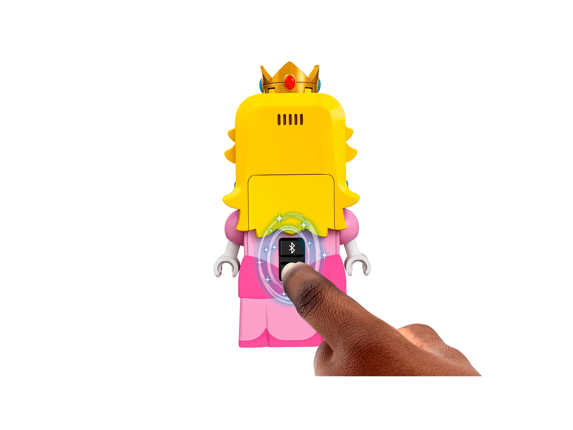 - Interactive LEGO® Peach™ figure – Features a colour sensor, an LCD screen to display various instant reactions to movement, and a speaker that plays iconic sounds and music from the video games