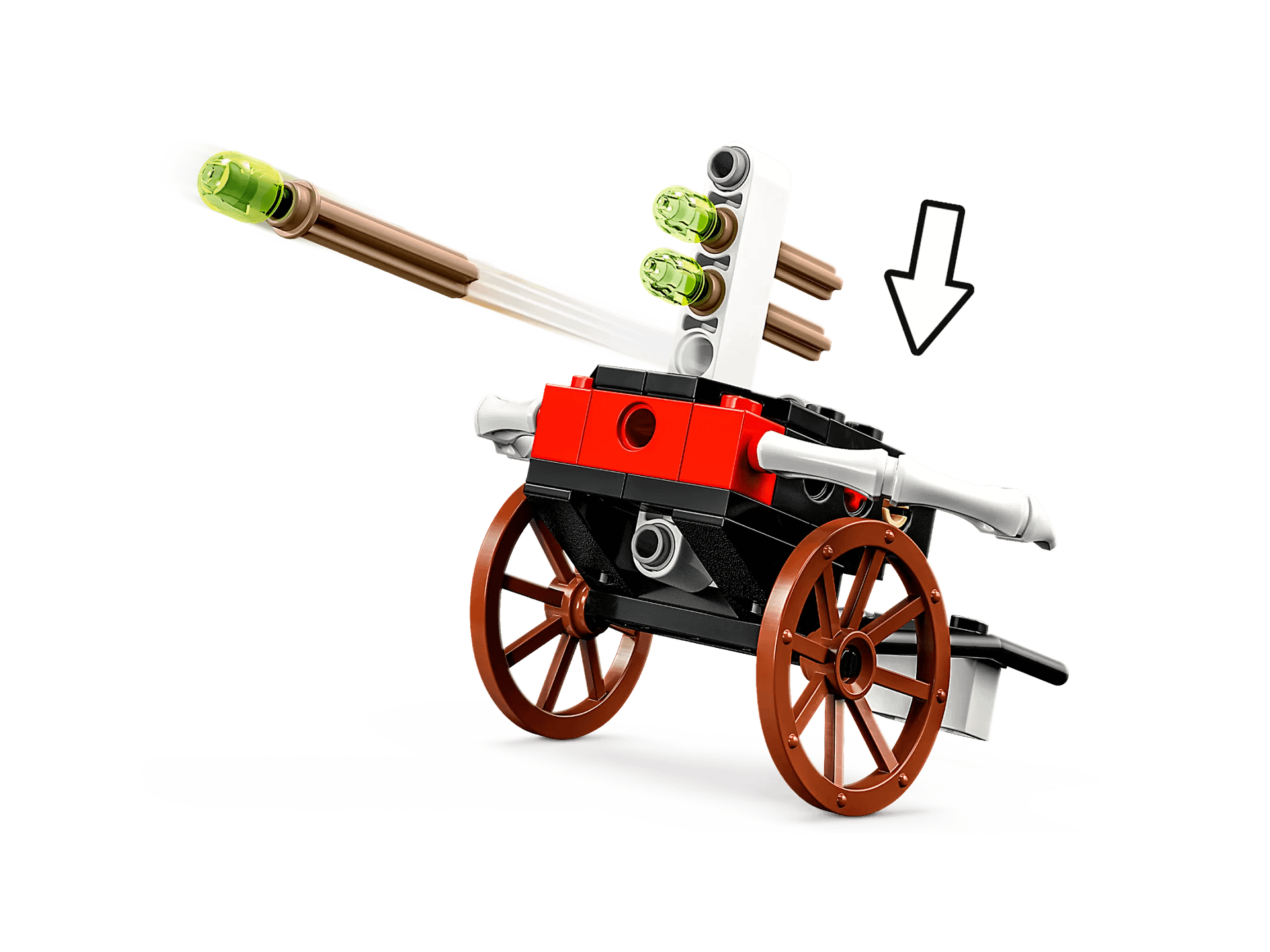 - Firing fun – Thegreen bone warriors are accompanied by a fast-firing double crossbow loaded with 4 darts and mounted on a wagon to give passionate ninja fans even more play options