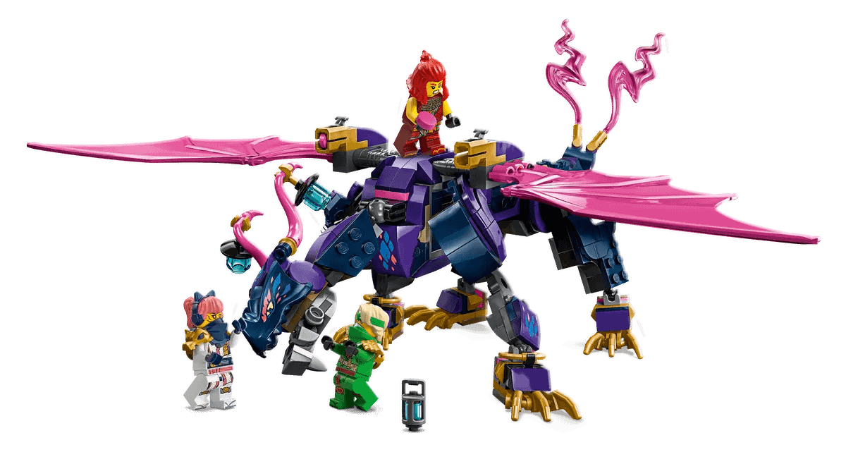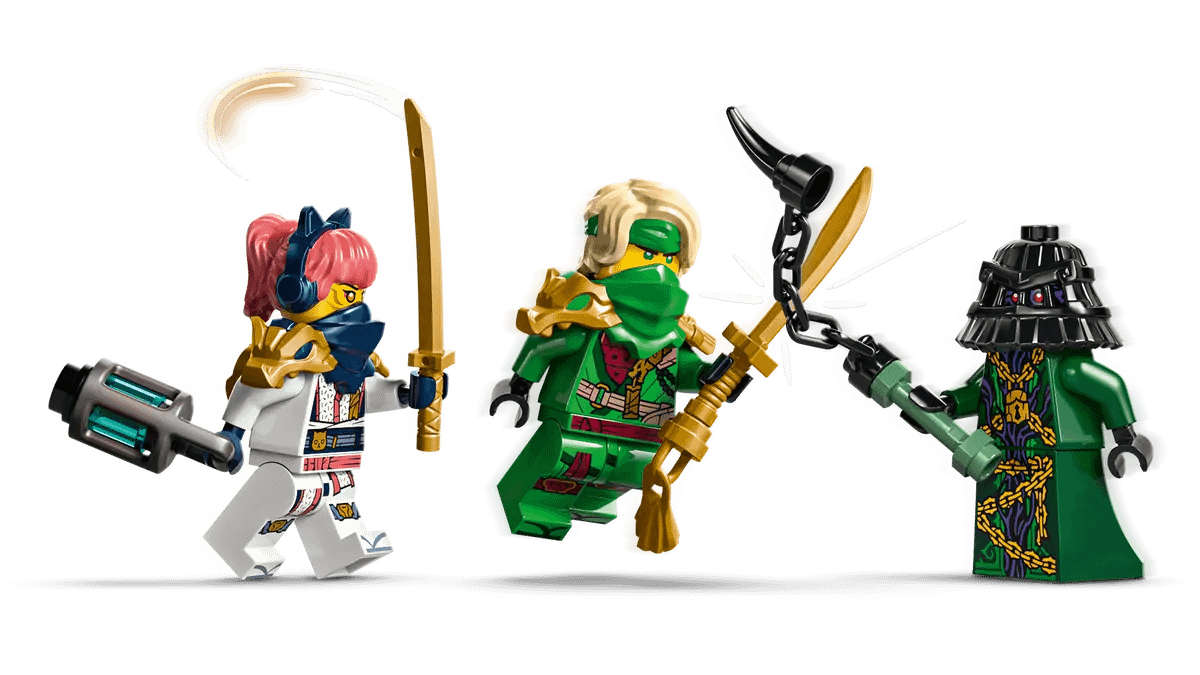 4 NINJAGO minifigures are included in the LEGO playset: ninja warriors Lloyd, Sora and Wyldfyre, each with a ninja weapon accessory, plus Master of Misfortune, Zarkt, for kids to play out epic good vs. evil battles. There is also a brick-built mini shrine with a secret message that Lloyd reveals with his translucent reveal blade accessory.