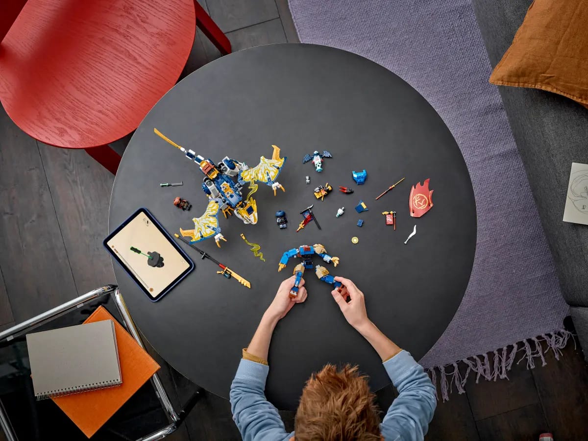 Kids can attach the mechs from Kai’s Mech Storm Rider (71830) and Kai’s Mech Rider EVO (71783) playsets (sold separately) to the back of this set’s dragon figure. This playset can be created with the LEGO® Builder app, which guides you and your child on a building adventure. Set contains 584 pieces.