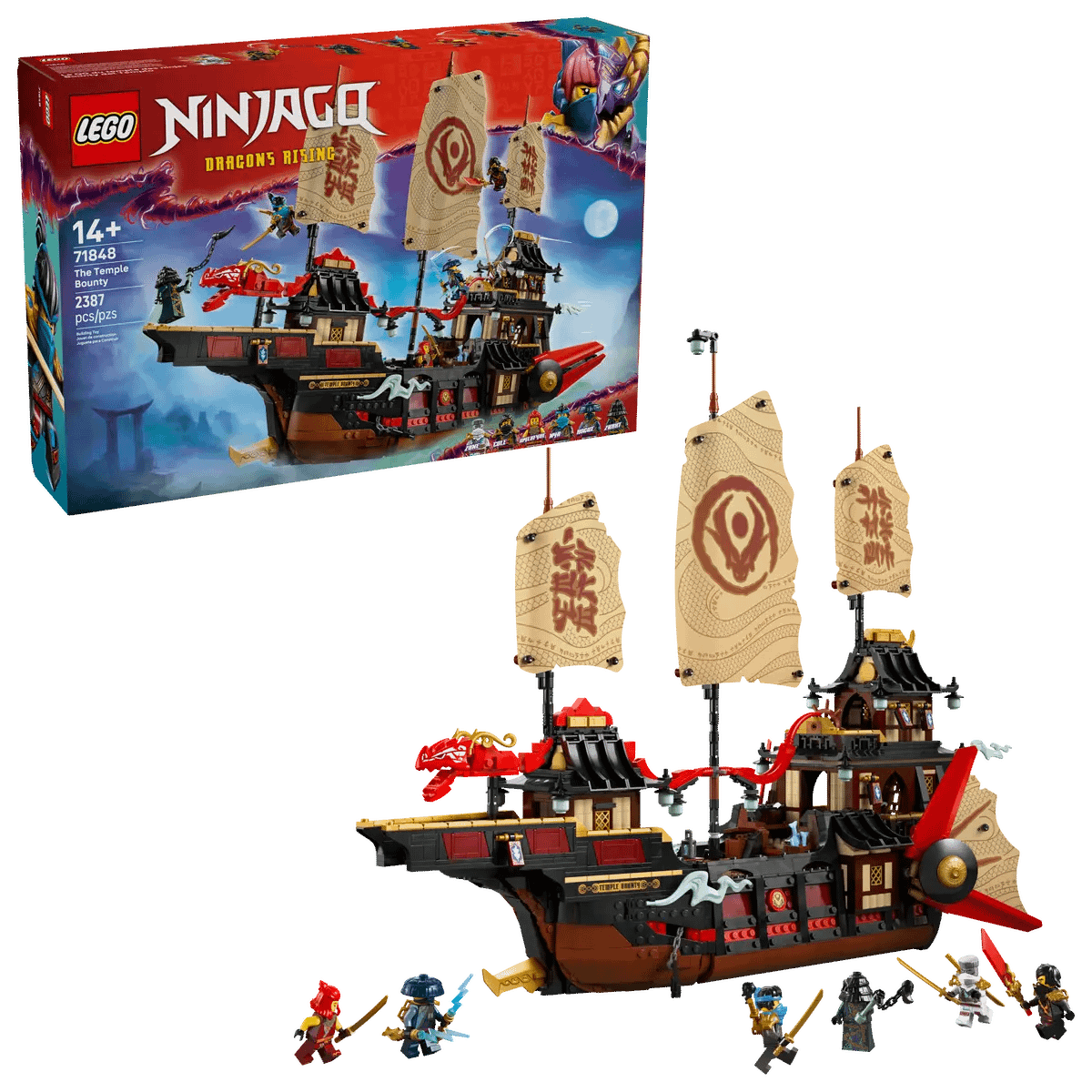 Older NINJAGO® fans aged 14 and up will be thrilled to add The Temple Bounty (71848) ship toy to their collection of LEGO® NINJAGO models. The large and highly detailed boat model is the latest in a line of famous NINJAGO ships and is packed with cool features and functions. It also comes with a display stand so fans can show it off on a shelf or bedside table.