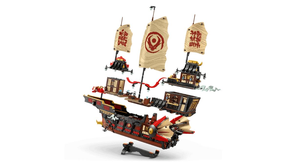 - Interactive ship playset – NINJAGO® fans turn a gear to move the sails, remove roofs and floors to gain access to the interior and a sushi bar, and fold a table in the main cabin to reveal a secret