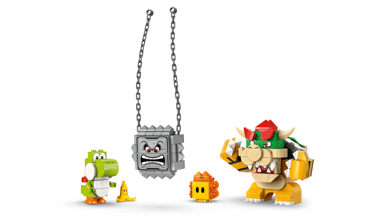 - 4 LEGO® Super Mario™ figures – This Nintendo® LEGO set includes character toy figures of Bowser, Yoshi, a Thwomp and a Lava Bubble, plus a Banana element with face decoration