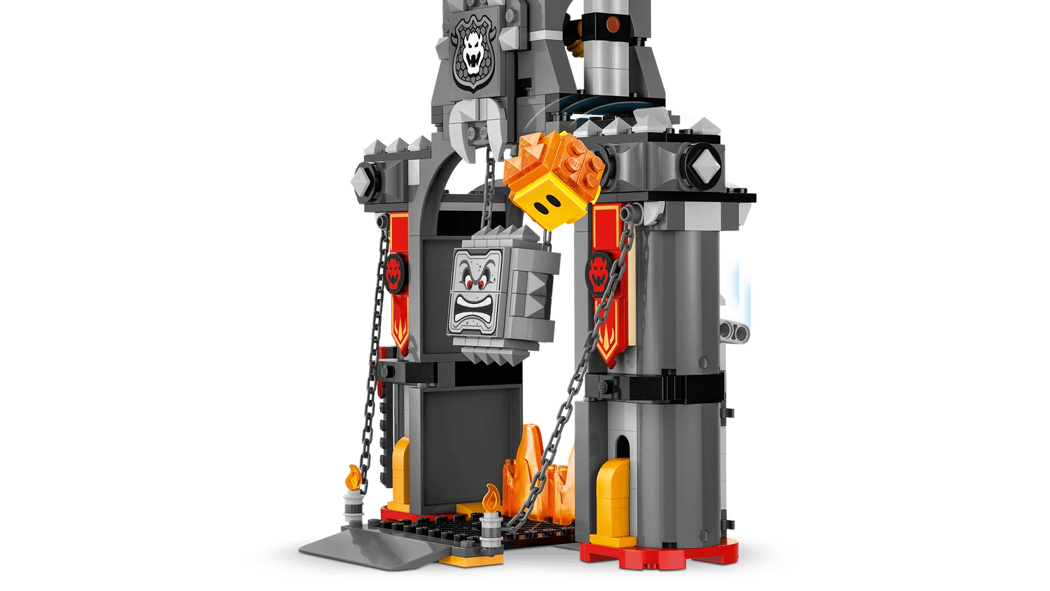 - Dimensions – The Bowser’s Castle model in this 1,068-piece set measures over 10 in. (26 cm) high, 14 in. (36 cm) wide and 8 in. (21 cm) deep