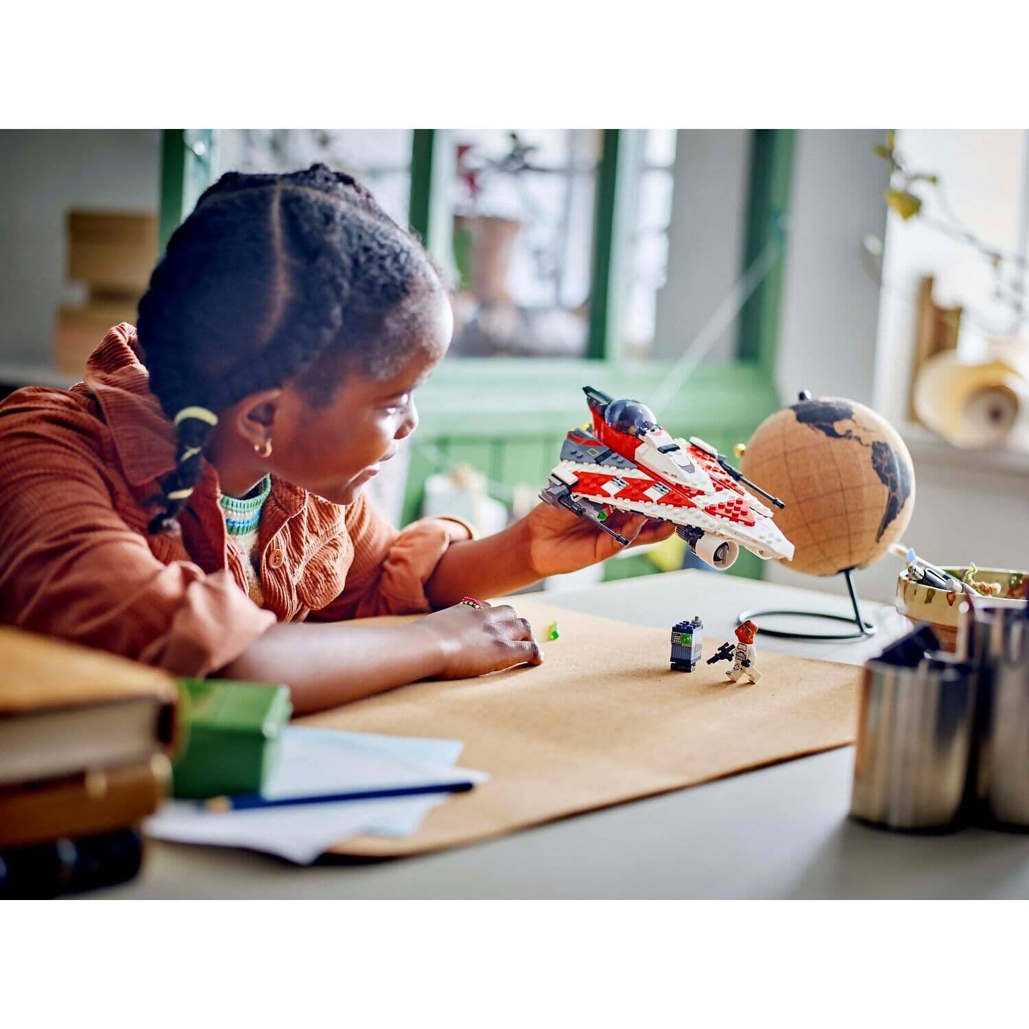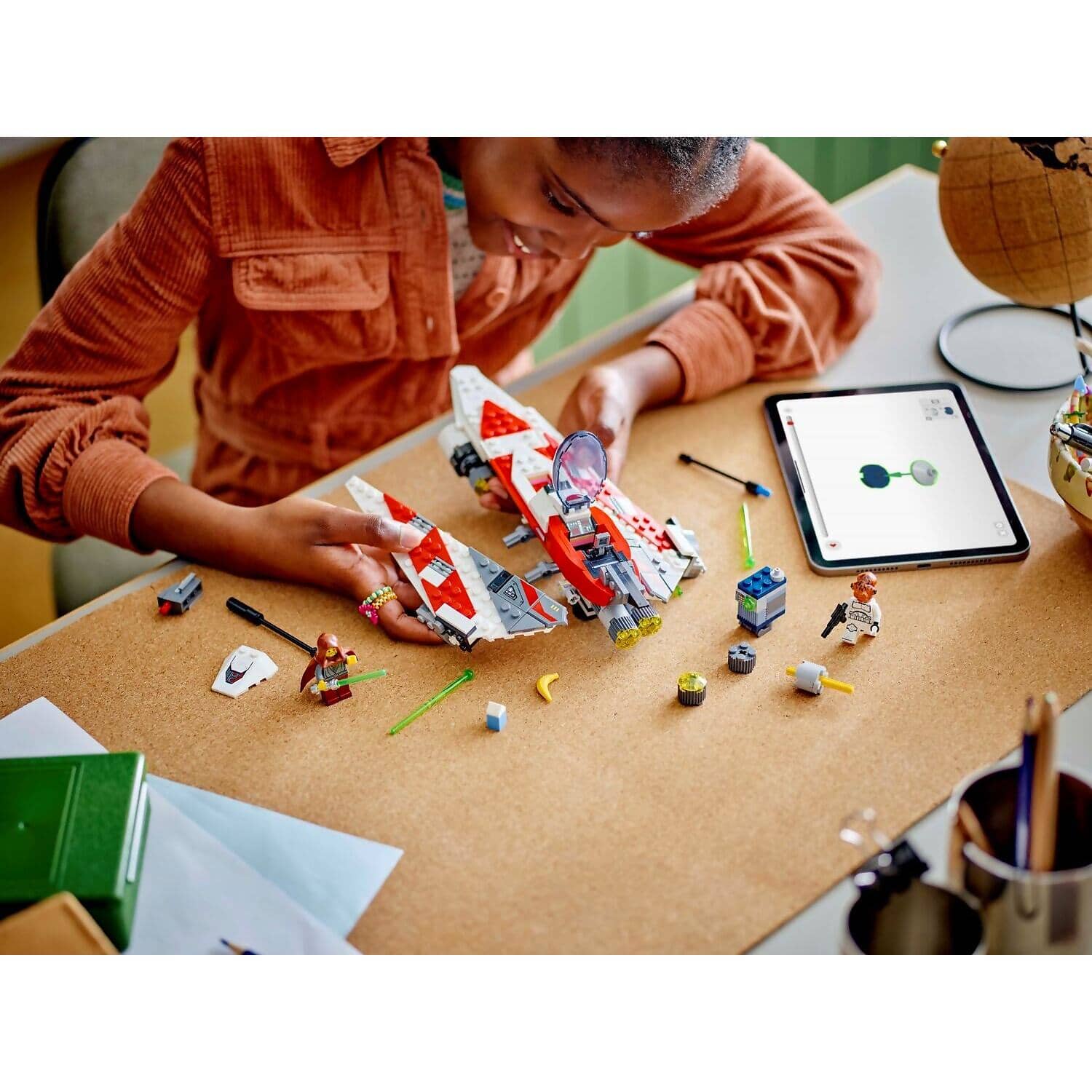 - Star Wars™ Jedi starfighter – The LEGO® brick-built starship toy features an opening cockpit with a storage compartment, 2 spring-loaded shooters, clips for lightsabers and retractable landing gear