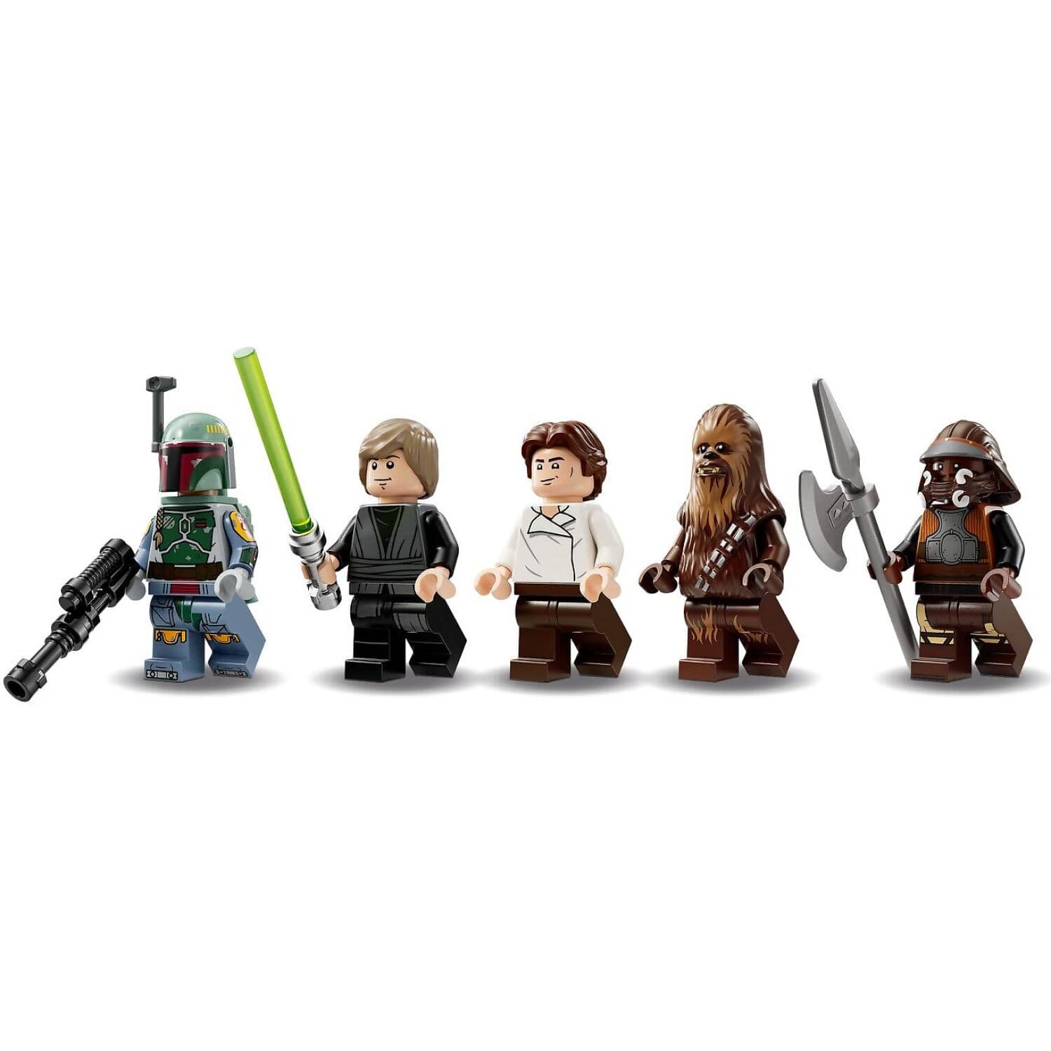 - 6 LEGO® Star Wars™ minifigures – Luke Skywalker, Han Solo, Chewbacca, Lando Calrissian, and Boba Fett with accessories, plus a LEGO Star Wars 25th anniversary minifigure of Nien Nunb
