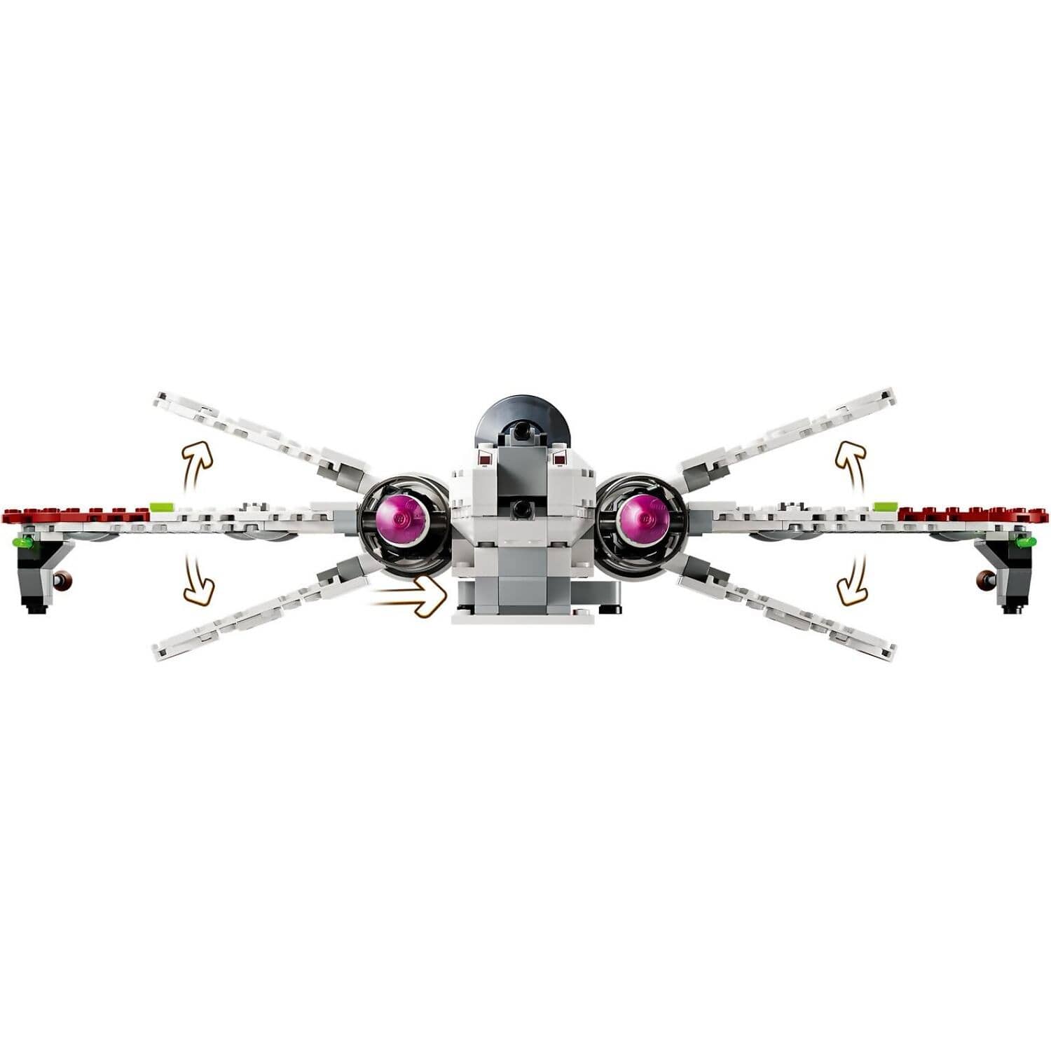 - LEGO® brick-built starfighter – Features 3 opening cockpits, a space for R4-P44, 6 wings, including 4 lever-operated adjustable wings for attack and cruise modes, and 2 spring-loaded shooters