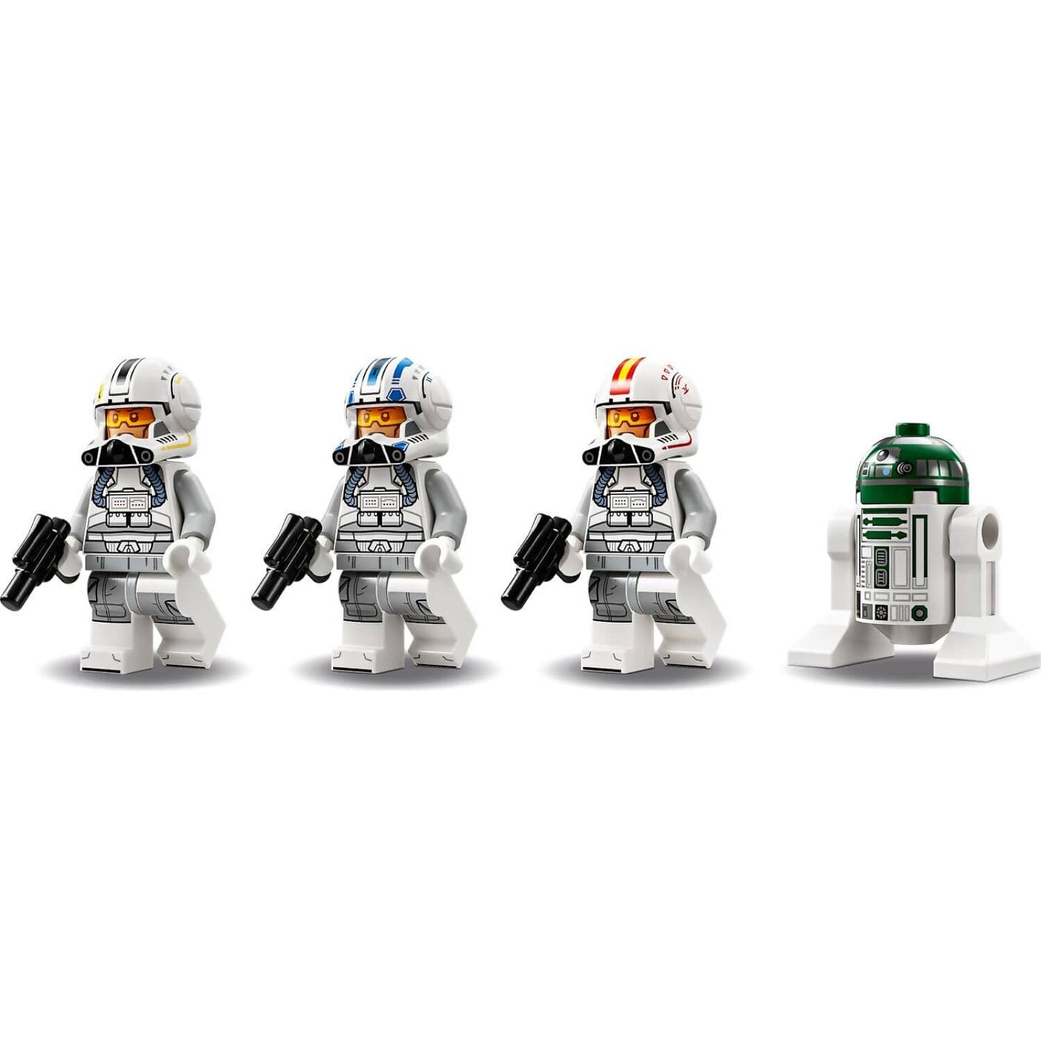 - 4 LEGO® Star Wars™ characters – Clone Pilot Odd Ball, Clone Pilot Jag and Clone Pilot LEGO Star Wars minifigures, each with blaster pistols, plus an R4-P44 LEGO droid figure