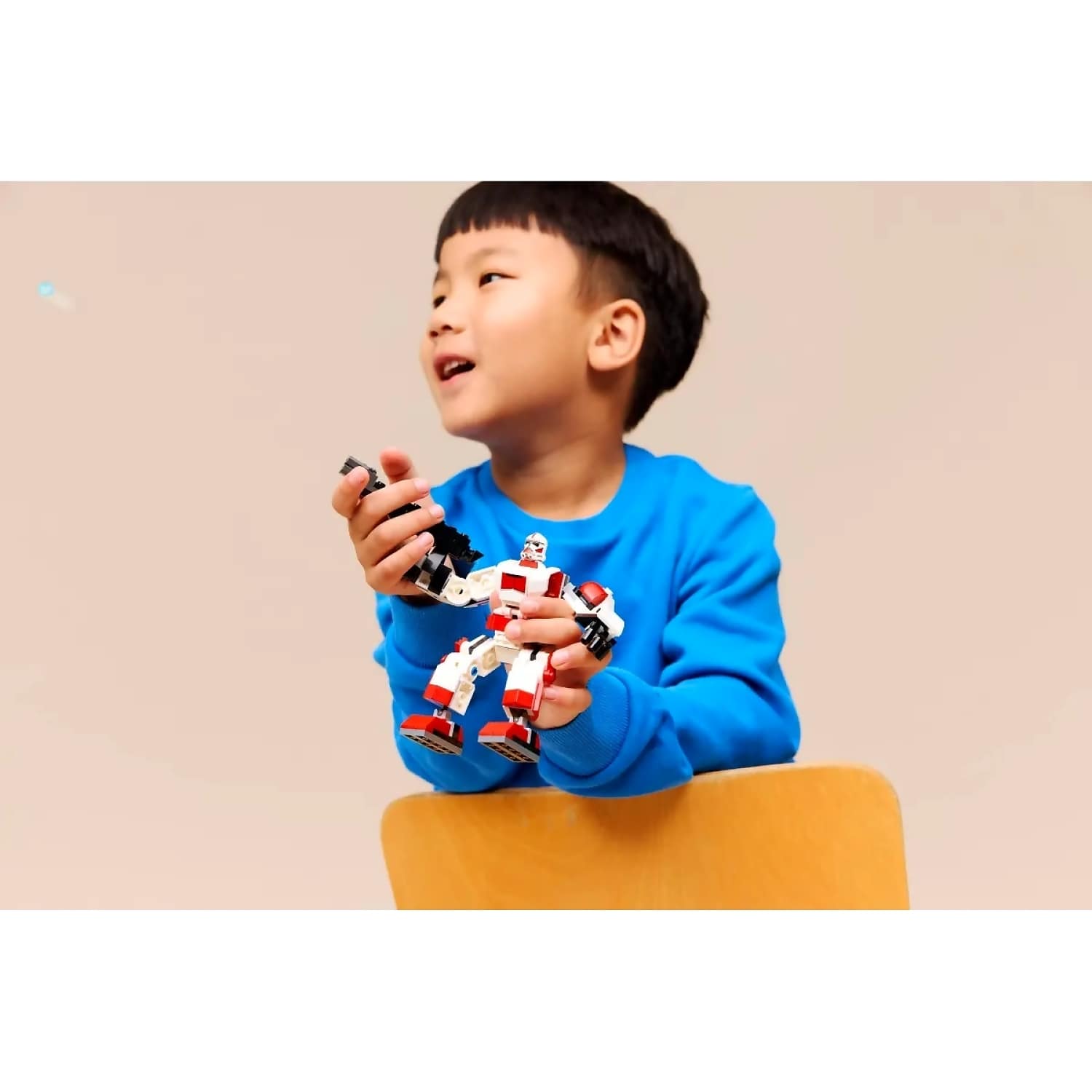 - PLAY AND DISPLAY – Pose the mech’s hands, arms, legs and feet, target enemies with its large, stud-shooting blaster rifle, and display the mech between playtime adventures