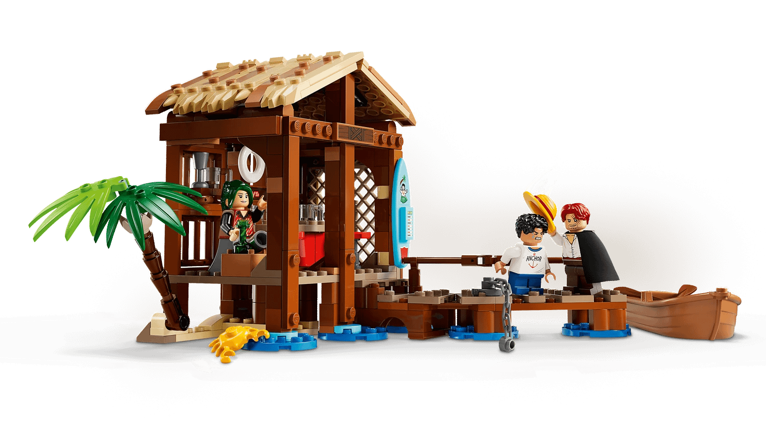 Kids can remove the roof of the beachside shop to access its fun-filled interior. Inside, they’ll find accessories for running the shop and entertaining customers. There’s a ‘Wanted’ poster to attach to the wall, and space for additional ‘Wanted’ posters available in other LEGO® ONE PIECE models (sold separately). Outside, there’s a pirate boat toy attached to the jetty by a chain. The set includes minifigures of Luffy, Shanks and Makino, 3 memorable characters from the Netflix show. For added digital fun, builders can zoom in, rotate models in 3D and track their progress using the intuitive LEGO Builder app. Set contains 299 pieces.