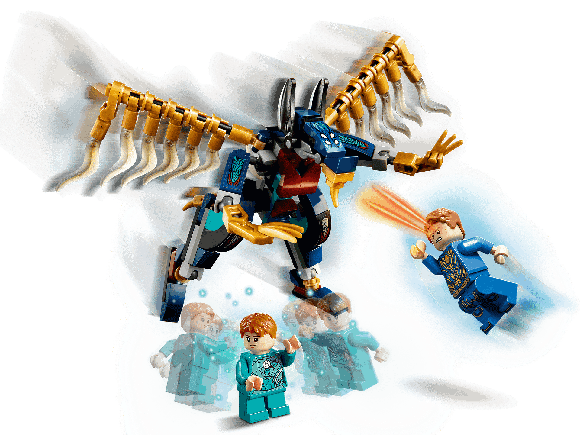 - With 2 LEGO® Marvel The Eternals minifigures – Ikaris and Sprite – an evil Deviant figure with movable wings, 2 sai swords, 1 Ninja sword and 2 power blasters, the scene is set for non-stop action!