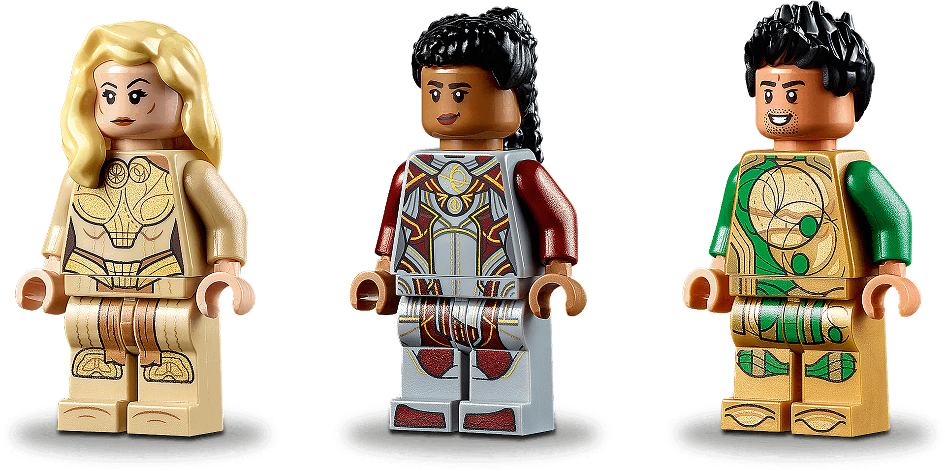 - Includes 3 LEGO® Marvel Eternals superhero minifigures – Thena, Makkari and the exclusive Gilgamesh – a posable, 6-legged Deviant with an open-and-close mouth, a dagger, fist weapon and a shooter.