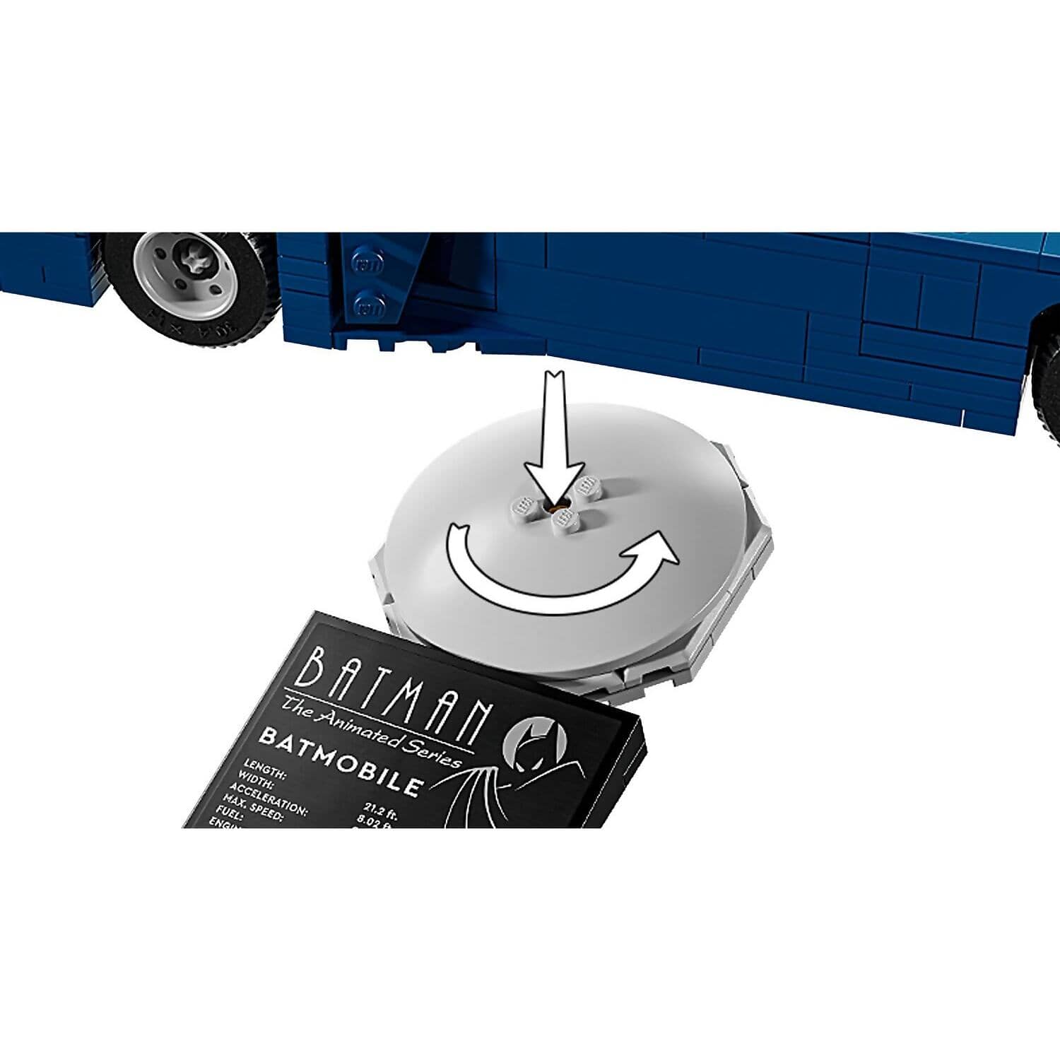 - Rotatable display stand – A rotatable stand and descriptive plate give a 360-degree view of the iconic LEGO® Batman™ Batmobile™