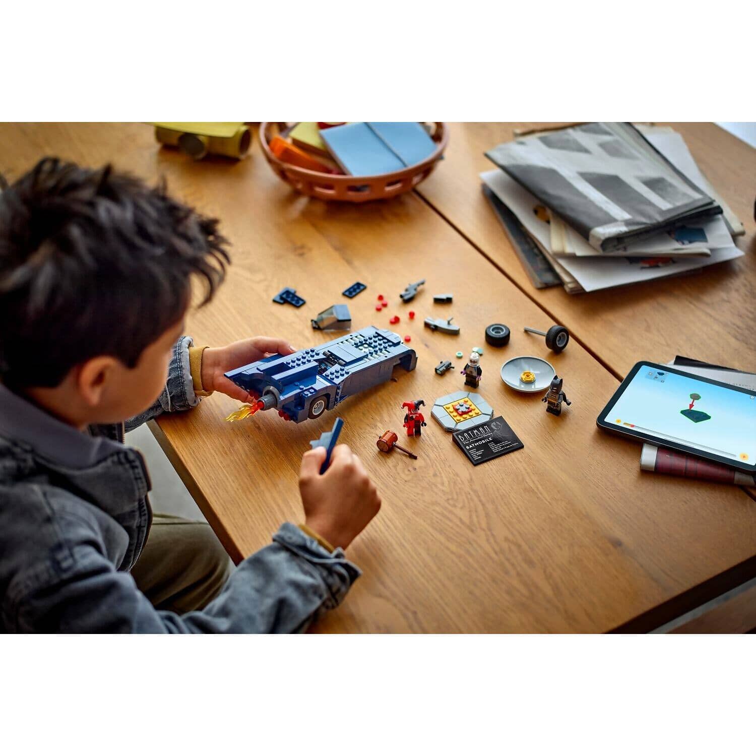 - LEGO® Batman™ vehicle set – The push-along Batmobile™ car includes detachable stud launchers on the hood, a lift-up cockpit, control panel and an exhaust-flame element that rotates when the car moves