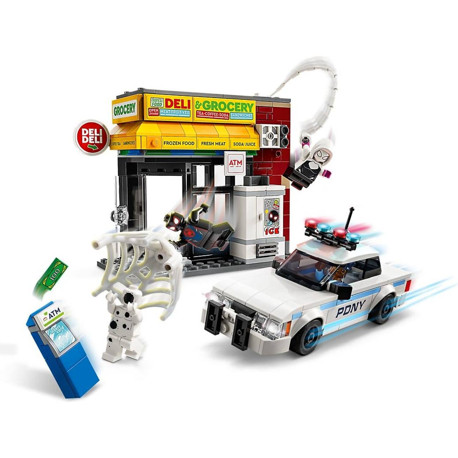 - LEGO® Spider-Man minifigures – The buildable Spider-Man playset comes with Miles Morales, The Spot, Gwen Stacy and Officer Jefferson minifigures, plus web-slinging accessories