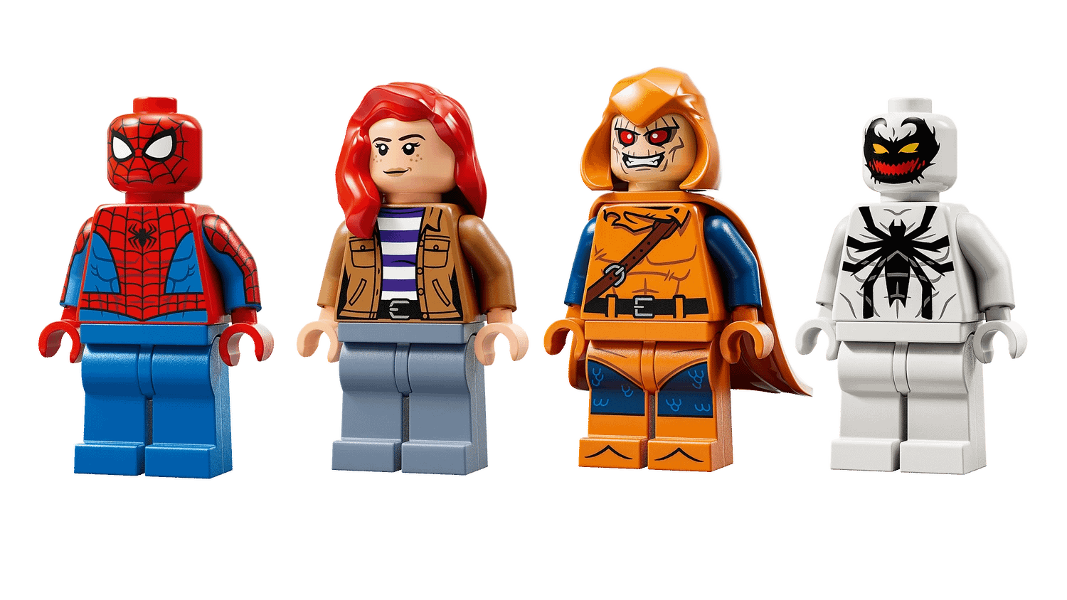 - LEGO® ǀ Marvel minifigures – The buildable set features Hobgoblin on his glider with pumpkin bombs, Spider-Man and Anti-Venom blasting webs and Mary Jane with a large, jointed spider robot
