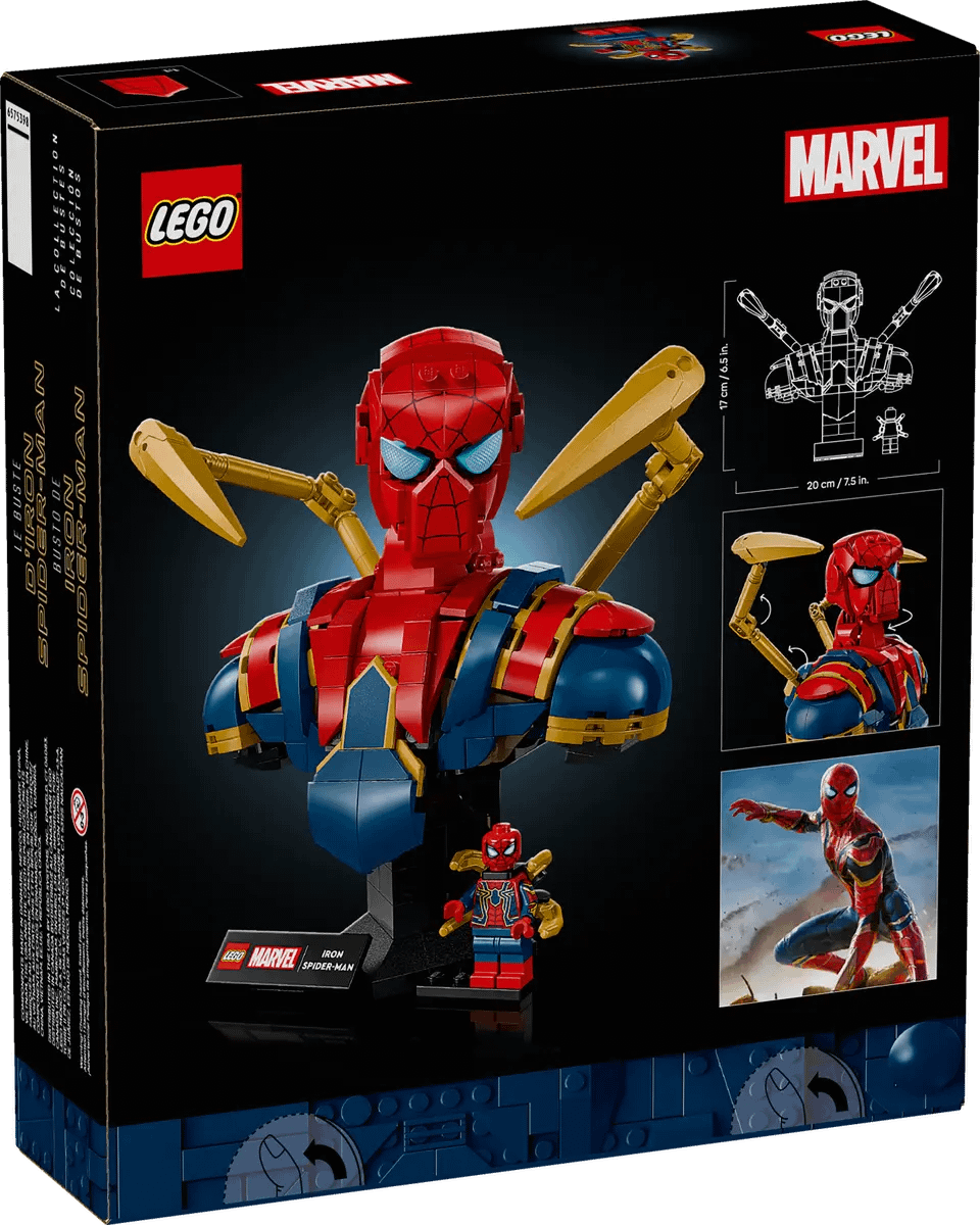 - Adult building set for Marvel fans – The Iron Spider-Man Bust is a collectible build-and-display set for experienced model-makers and adult Super Hero enthusiasts