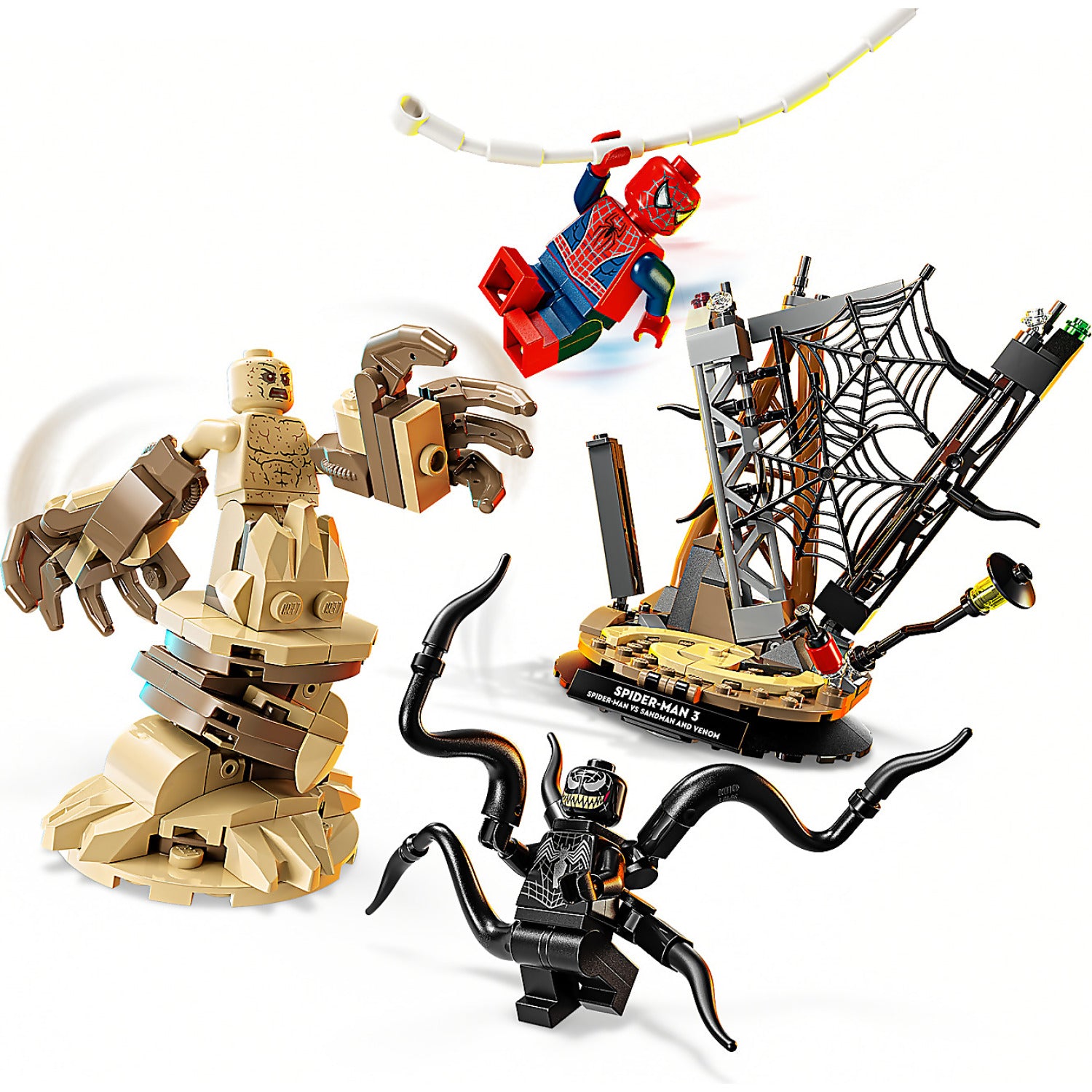 - 3 LEGO® ǀ MARVEL MINIFIGURES – This building set comes with 3 minifigures battling on a construction site: Spider-Man, Venom with tentacles and Sandman with a brick-built base and a supersized arm