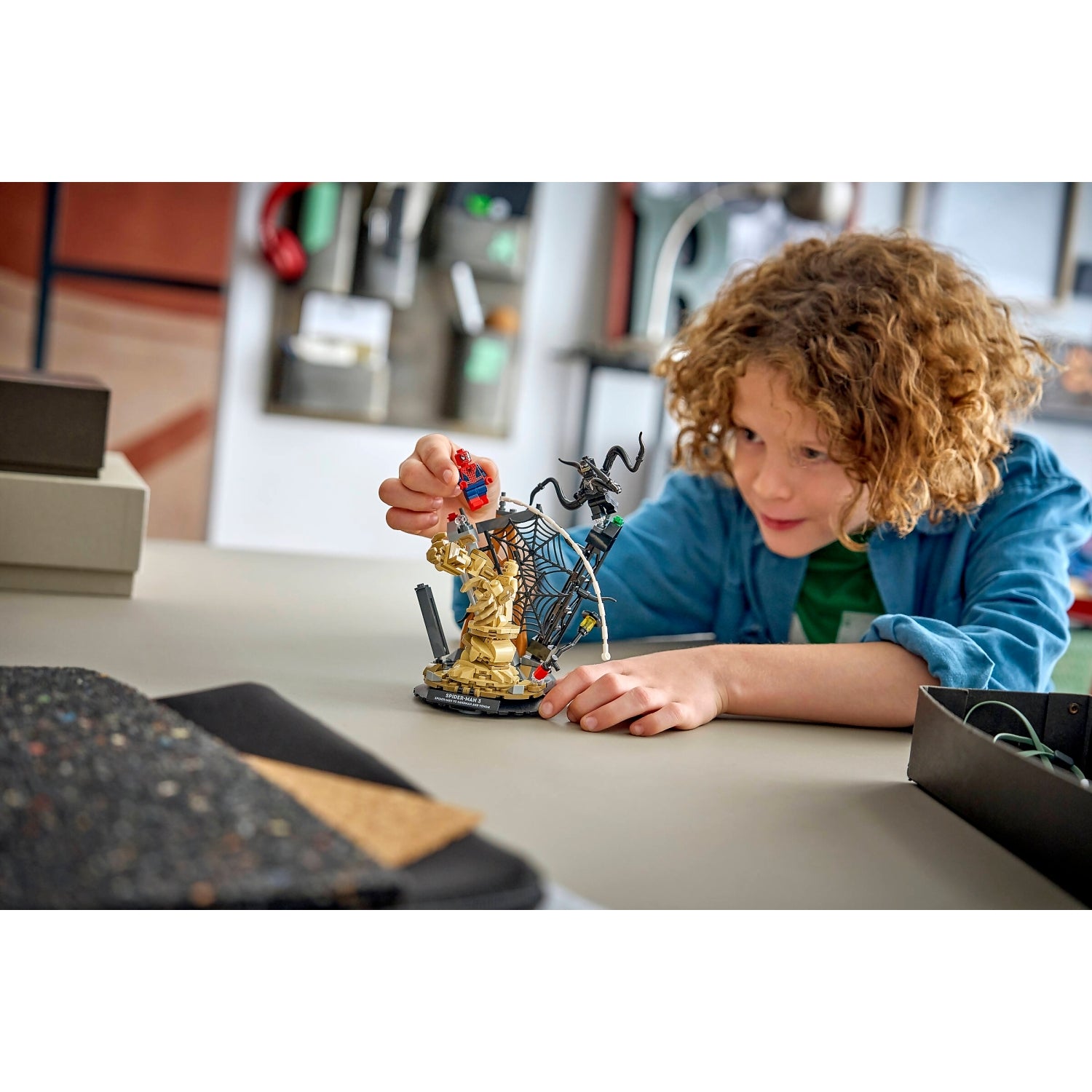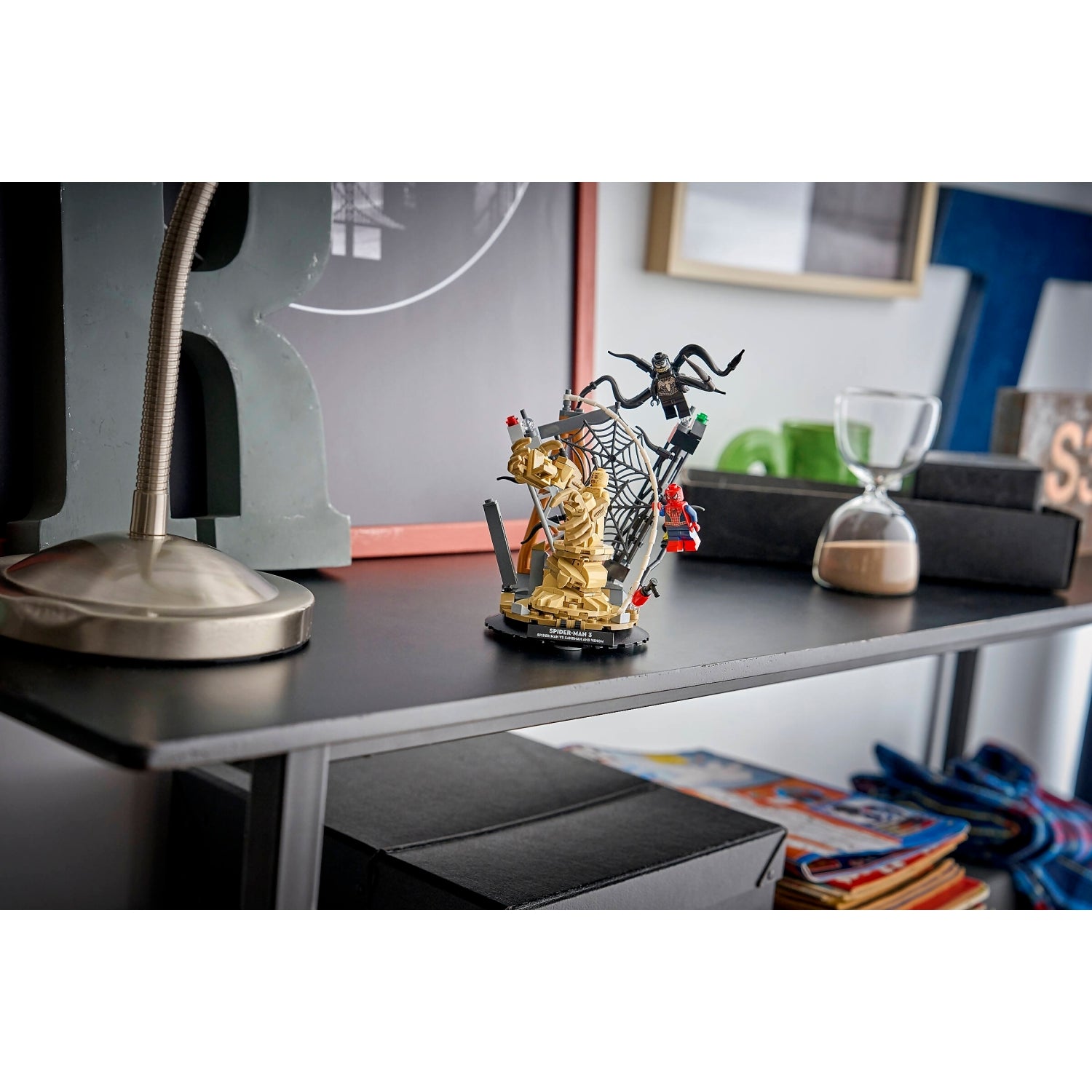 The buildable set comes with a stellar cast of characters from the movie and lots of interactive elements: Spider-Man swings down from a tower on a web rope; Sandman rises from the rubble with a supersized arm; and Venom strikes with 4 movable tentacles. Kids can display the LEGO model as room decor with the sturdy base and nameplate or detach the minifigures to create pretend play stories of their own.