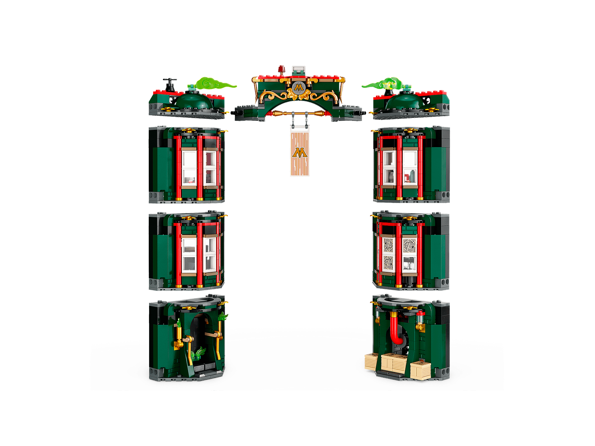 - Authentic accessories – Familiar items from the films include a red phone box, stacks of the Daily Prophet newspaper, Umbridge's Patronus cat, 2 decoy detonators and the Slytherin™ locket Horcrux