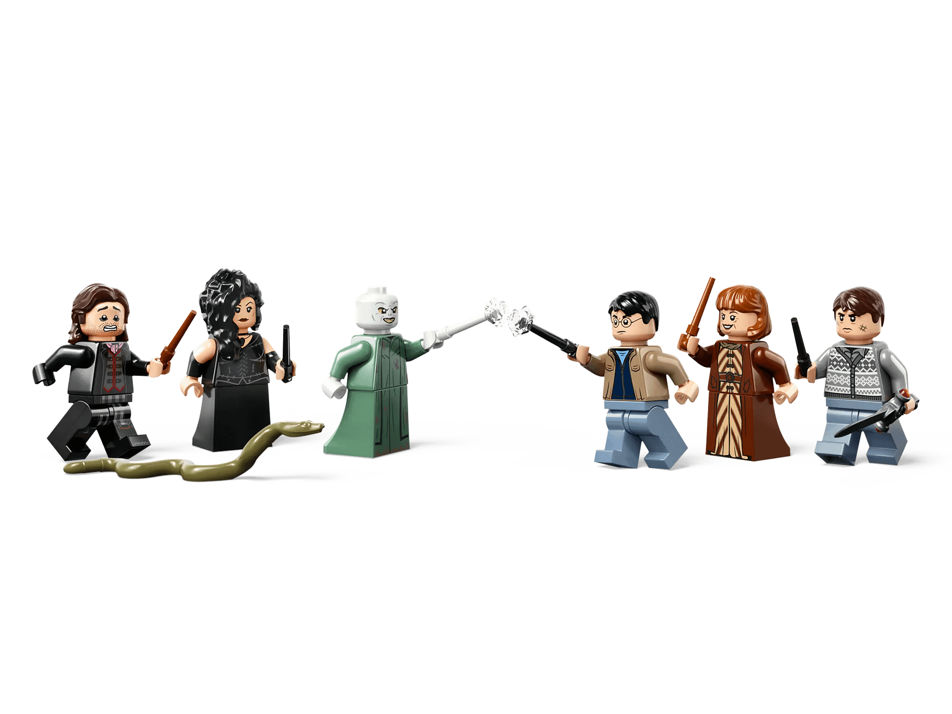 - 6 LEGO® minifigures – Harry Potter™ and Voldemort™, each with a wand and spell-casting element, Neville Longbottom™ with the Sword of Gryffindor™, Scabior, Molly Weasley™ and Bellatrix Lestrange