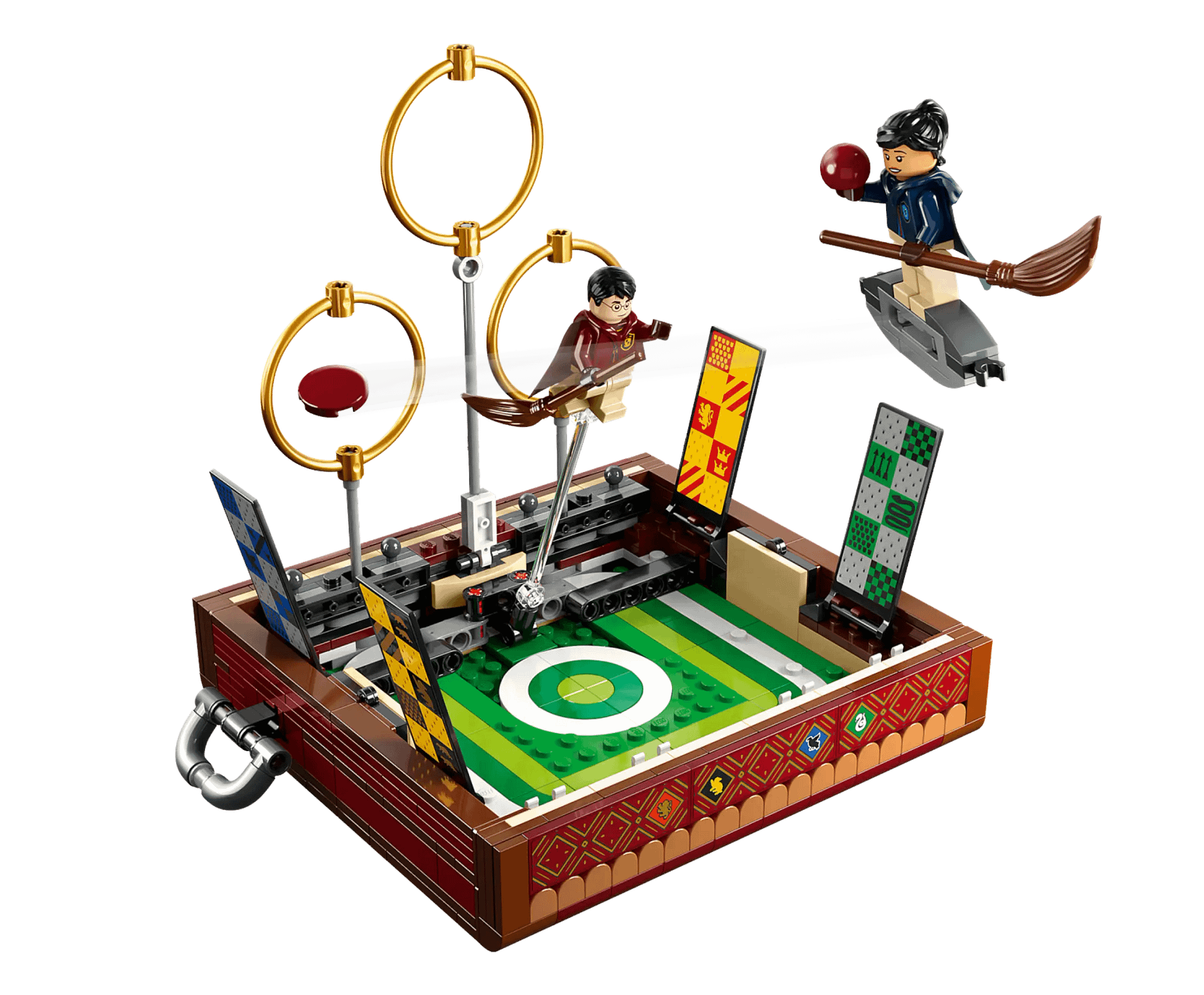 - Authentic accessory elements – Includes the Golden Snitch™, a Quaffle, 2 brooms, 2 bludgers, 2 bats, a trophy, plus Gryffindor™, Slytherin™, Ravenclaw™ and Hufflepuff™ house banners