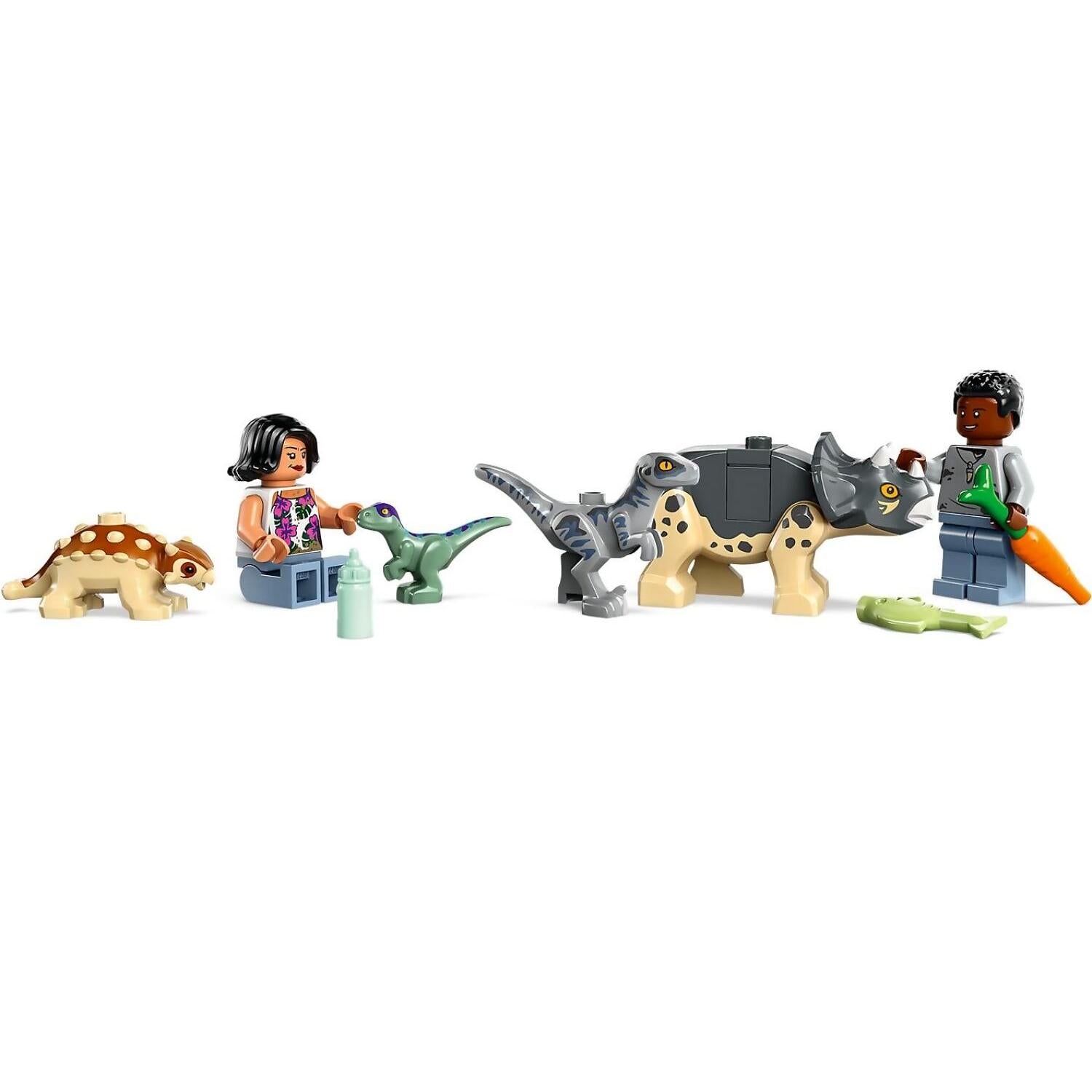 Young fans aged 4+ can care for and play with dinosaur babies while learning to build with this LEGO® Jurassic World Baby Dinosaur Rescue Center (76963) set. It includes an off-road vehicle and research area with a cave wall, both with Starter Brick elements, plus a feeding station. 2 minifigures, baby Ankylosaurus, Triceratops and Velociraptor figures, and small Velociraptor and adult Pteranodon kids’ dinosaur toy figures get play started fast.