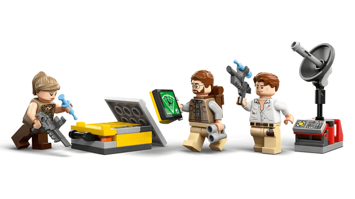- Detailed playset – This LEGO® Jurassic World set includes a toy charging station with storytelling items, a camp area and tree, a small motorcycle toy, a drone and an off-road vehicle with a trailer