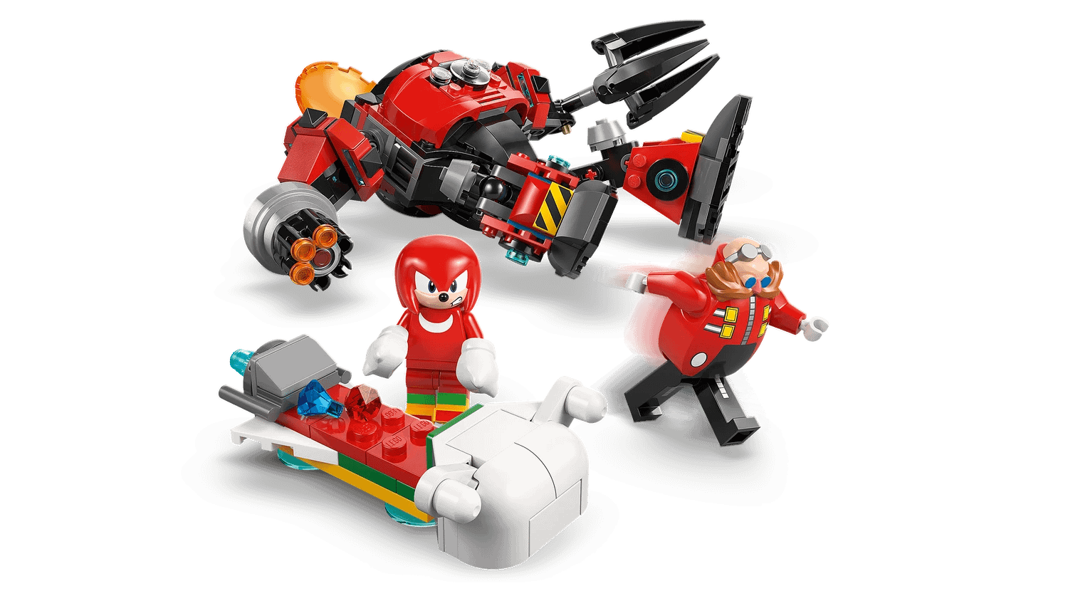 - Dr. Eggman mech toy – This role-play toy for kids features a buildable, posable mech, a hoverboard and a catapult toy with 2 boulders, plus Knuckles and Dr. Eggman characters