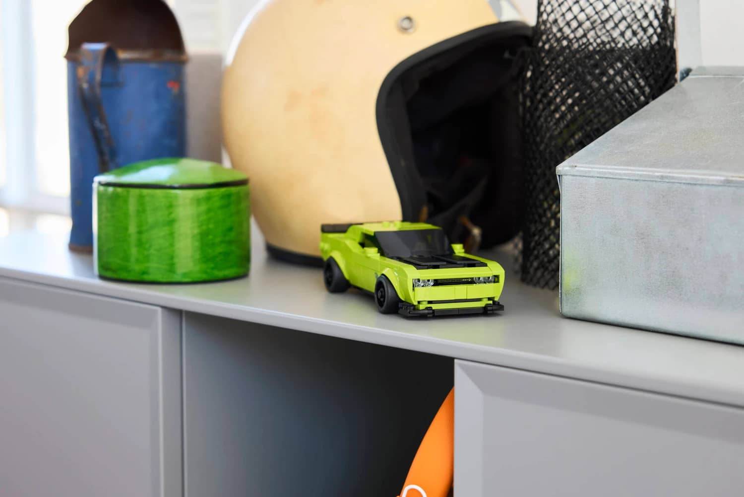 - Dodge Hellcat display model – After kids have enjoyed playing out racing stories with the brick-built replica car, they can display it on a shelf or desk