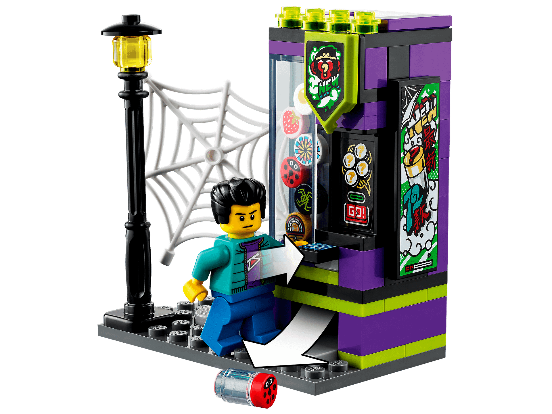 - The jet airplane features 2 spring-loaded shooters and 2 stud shooters. Theres also a buildable, working vending machine – ‘scan the cell phone element and drink-can elements are dispensed.