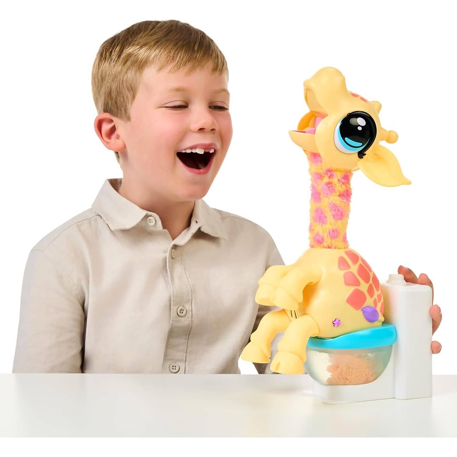 Meet Gigi, the hilariously cheeky giraffe from Little Live Pets who’s full of personality and jungle fun. With her wobbly neck and catchy toilet song, Gigi brings giggles and interactive play to life as she eats, chats, and poops in her very own toilet. Children will love feeding her magical giraffe food and watching her sing “Uh Oh! Gotta Go!” before she does her business.