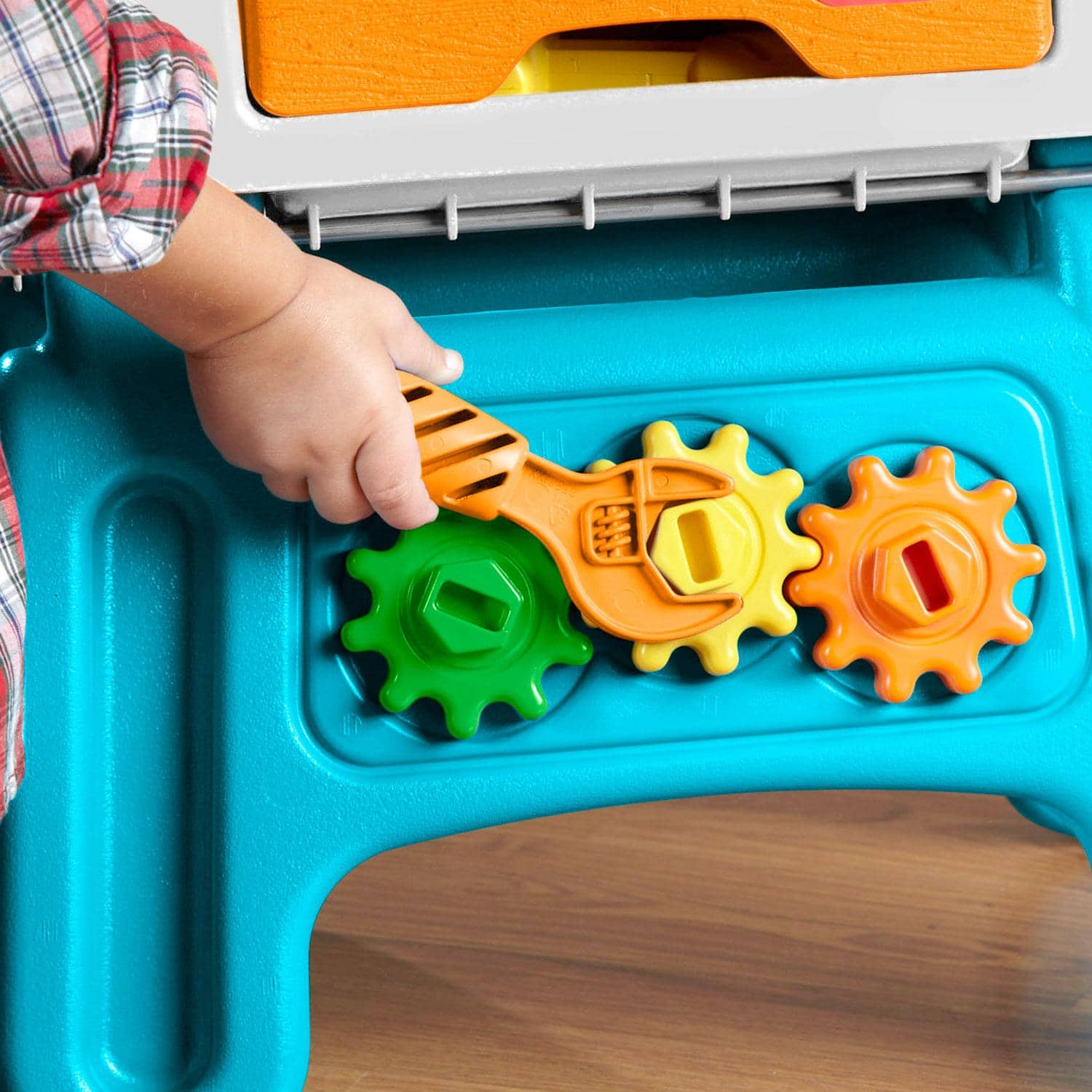 Kids love tinkering with the working gears, pretend play nails & screws, & kid-sized tools