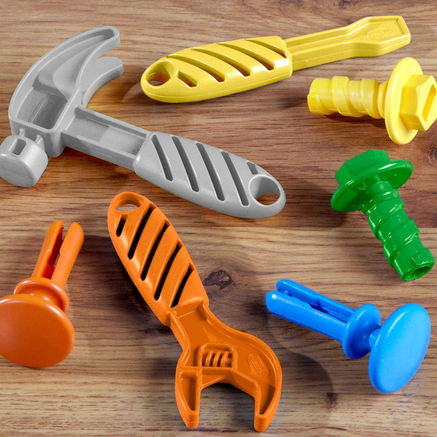 Activities like using the screwdriver, wrench, and hammer help kids develop their fine motor skills