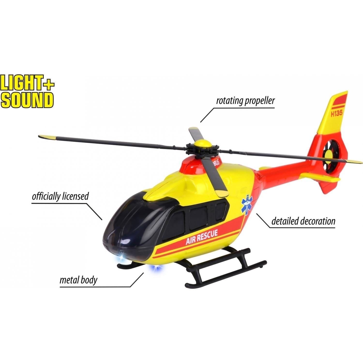 Majorette – Airbus H135 rescue helicopter (red/yellow, 25.5 cm) – Large toy helicopter with die-cast fuselage, rotating propellers, light and sound effects, for children aged 3 and above