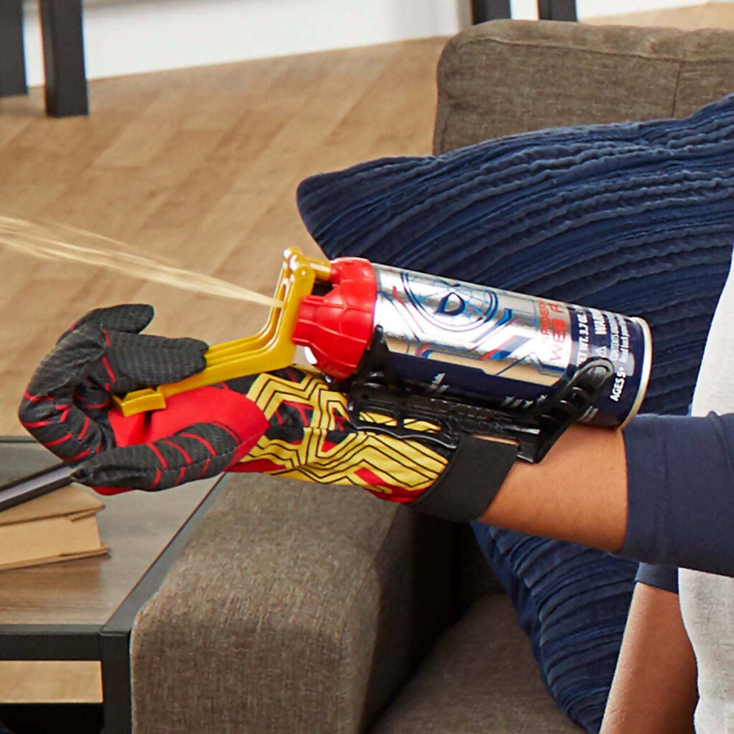 WEARABLE GLOVE ATTACHES TO WRIST: Suit up with the glove and velcro on this Spider-Man web shooter toy to imitate Spider-Man’s signature 'thwip' move and blast web fluid or water. Would be a webtastic addition to any Spider-Man party!